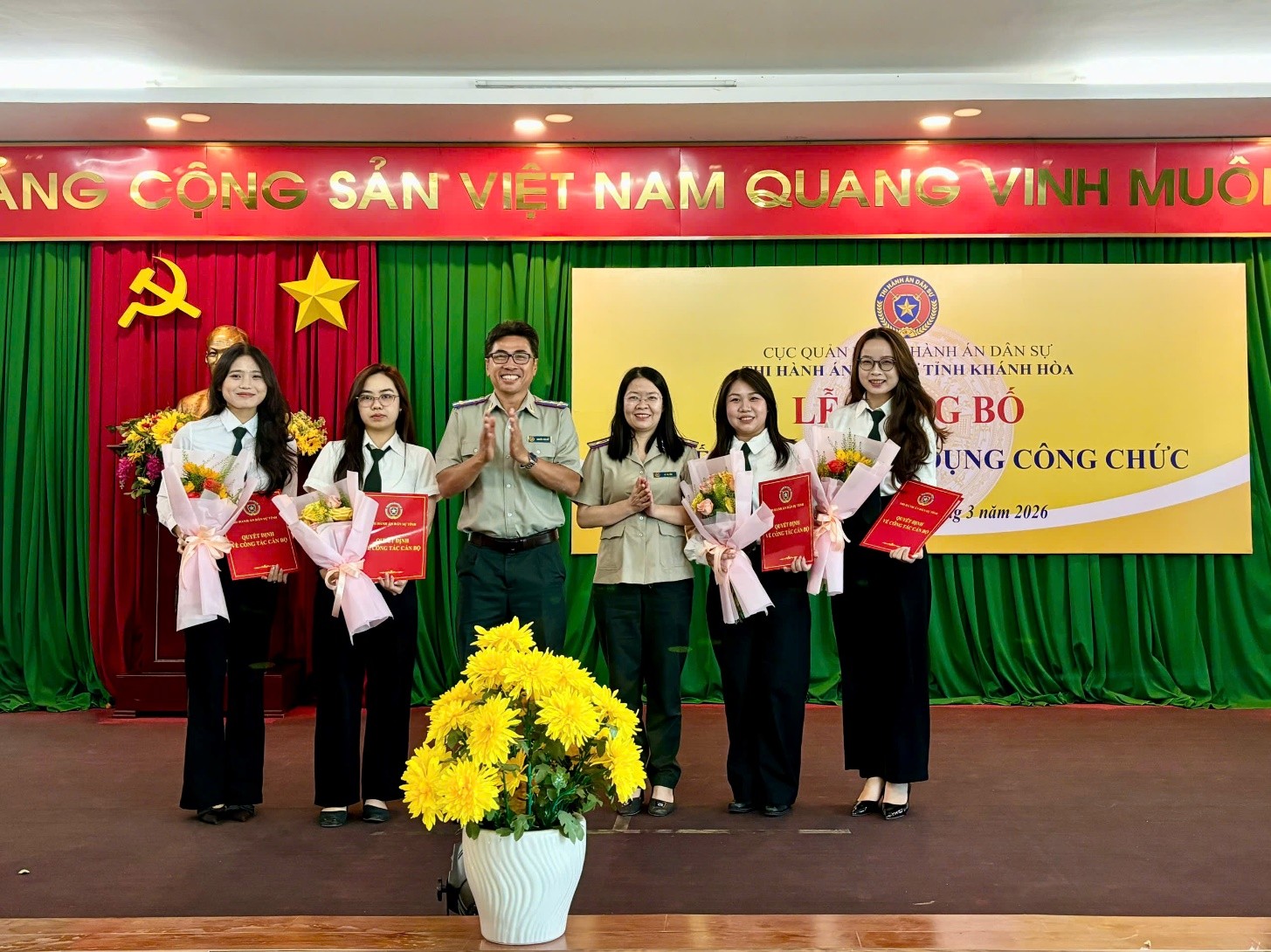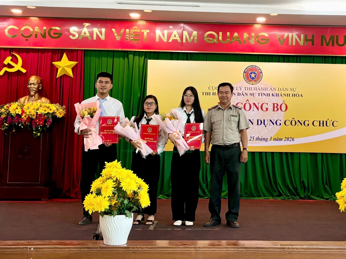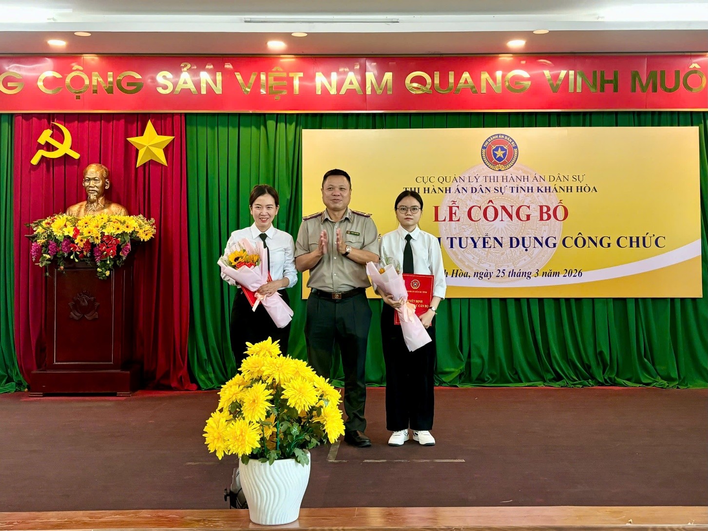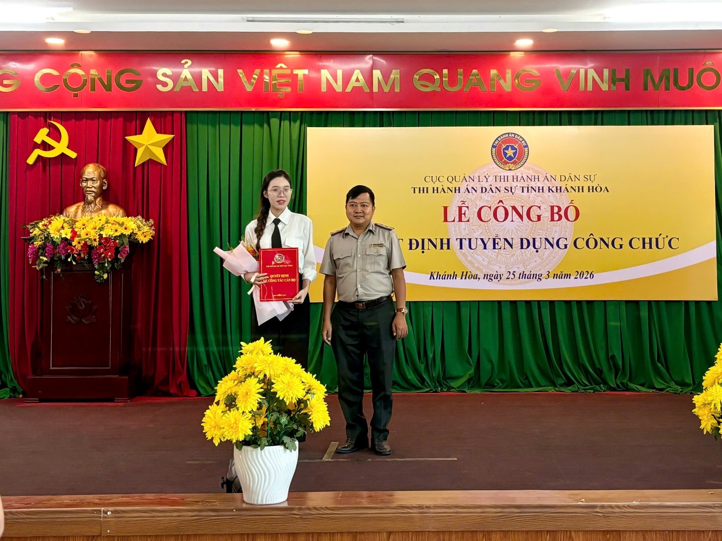 Sáng ngày 25-3, tại Hội trường Lầu 5, Thi hành án dân sự (THADS) tỉnh Khánh Hòa đã long trọng tổ chức Lễ công bố và trao Quyết định tuyển dụng công chức cho 29 công chức trúng tuyển trong kỳ thi tuyển dụng công chức năm 2025.