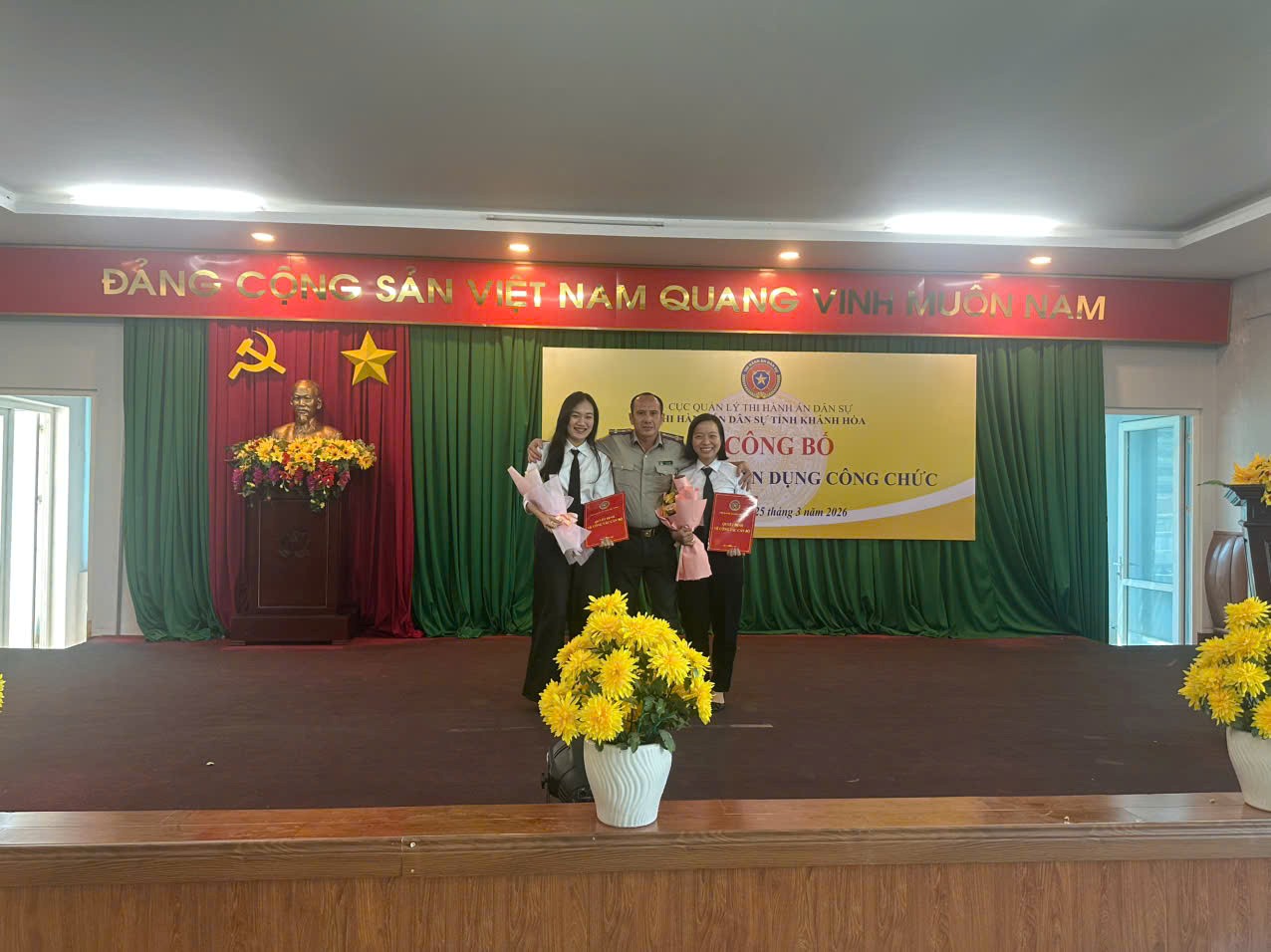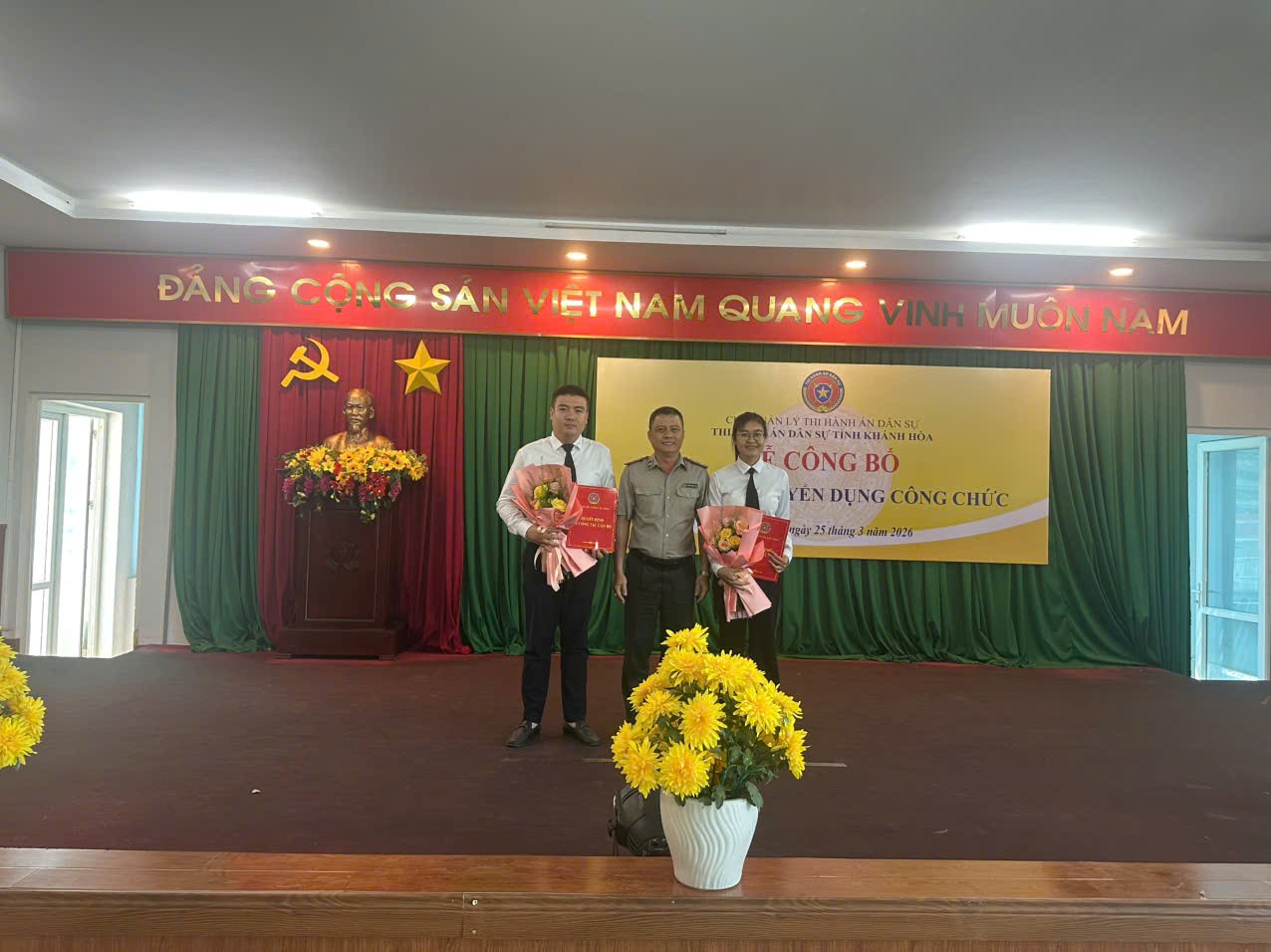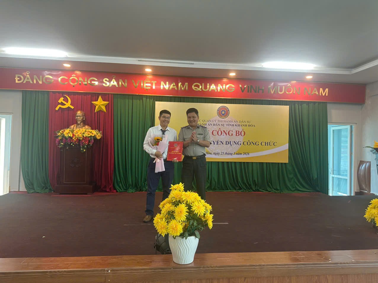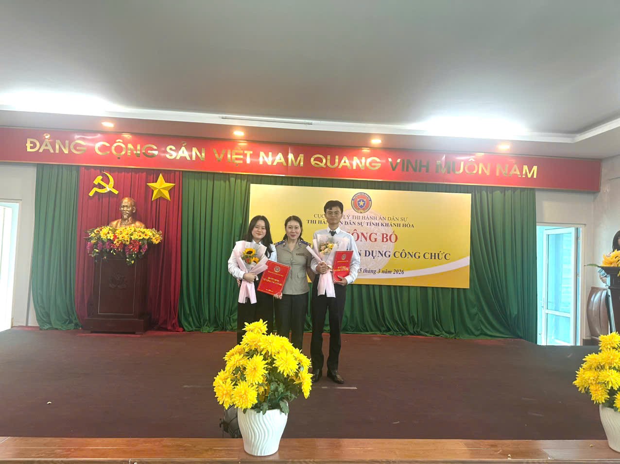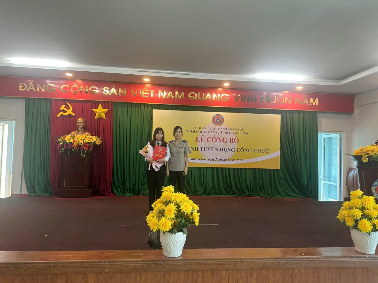 Sáng ngày 25-3, tại Hội trường Lầu 5, Thi hành án dân sự (THADS) tỉnh Khánh Hòa đã long trọng tổ chức Lễ công bố và trao Quyết định tuyển dụng công chức cho 29 công chức trúng tuyển trong kỳ thi tuyển dụng công chức năm 2025.