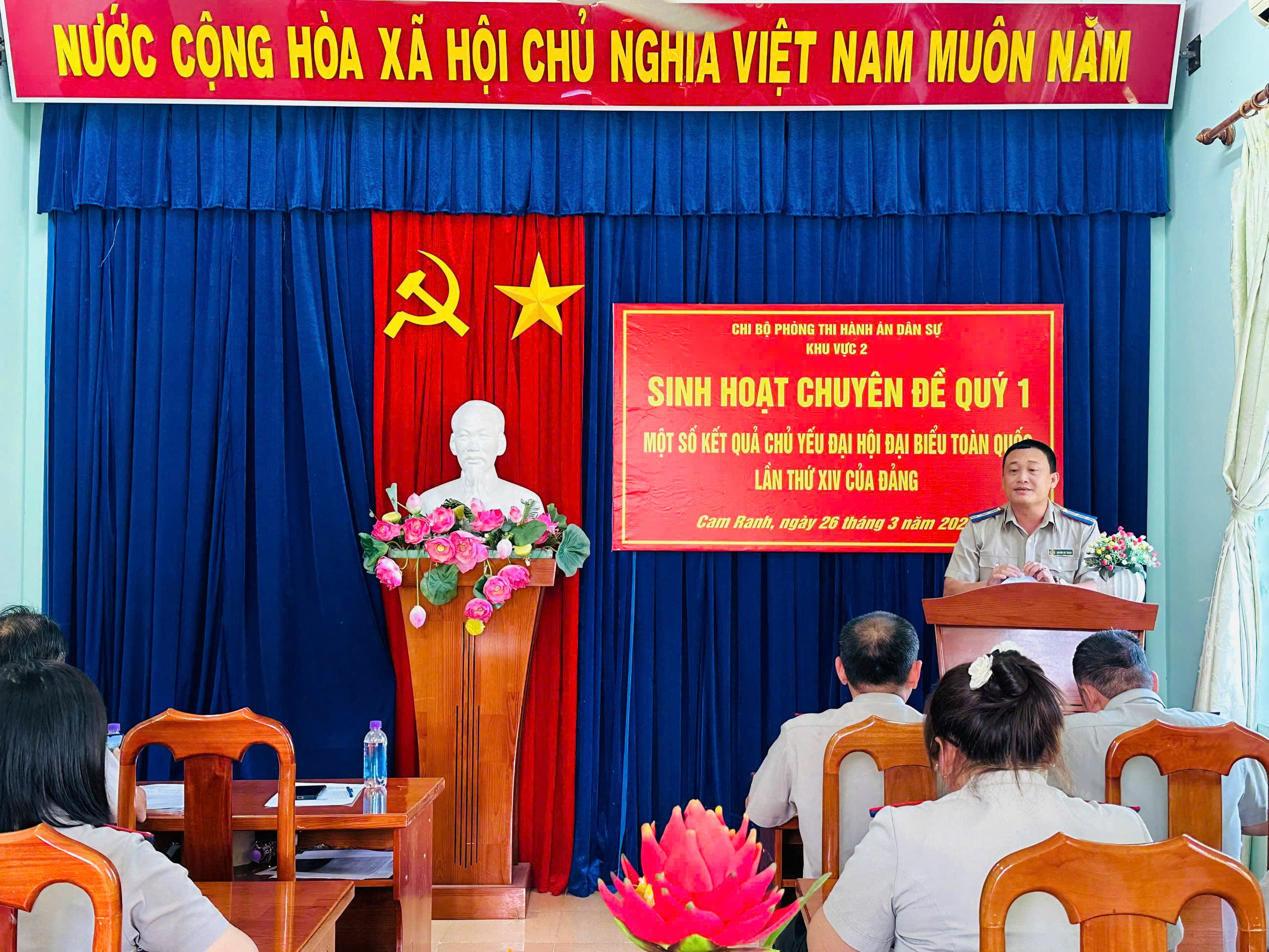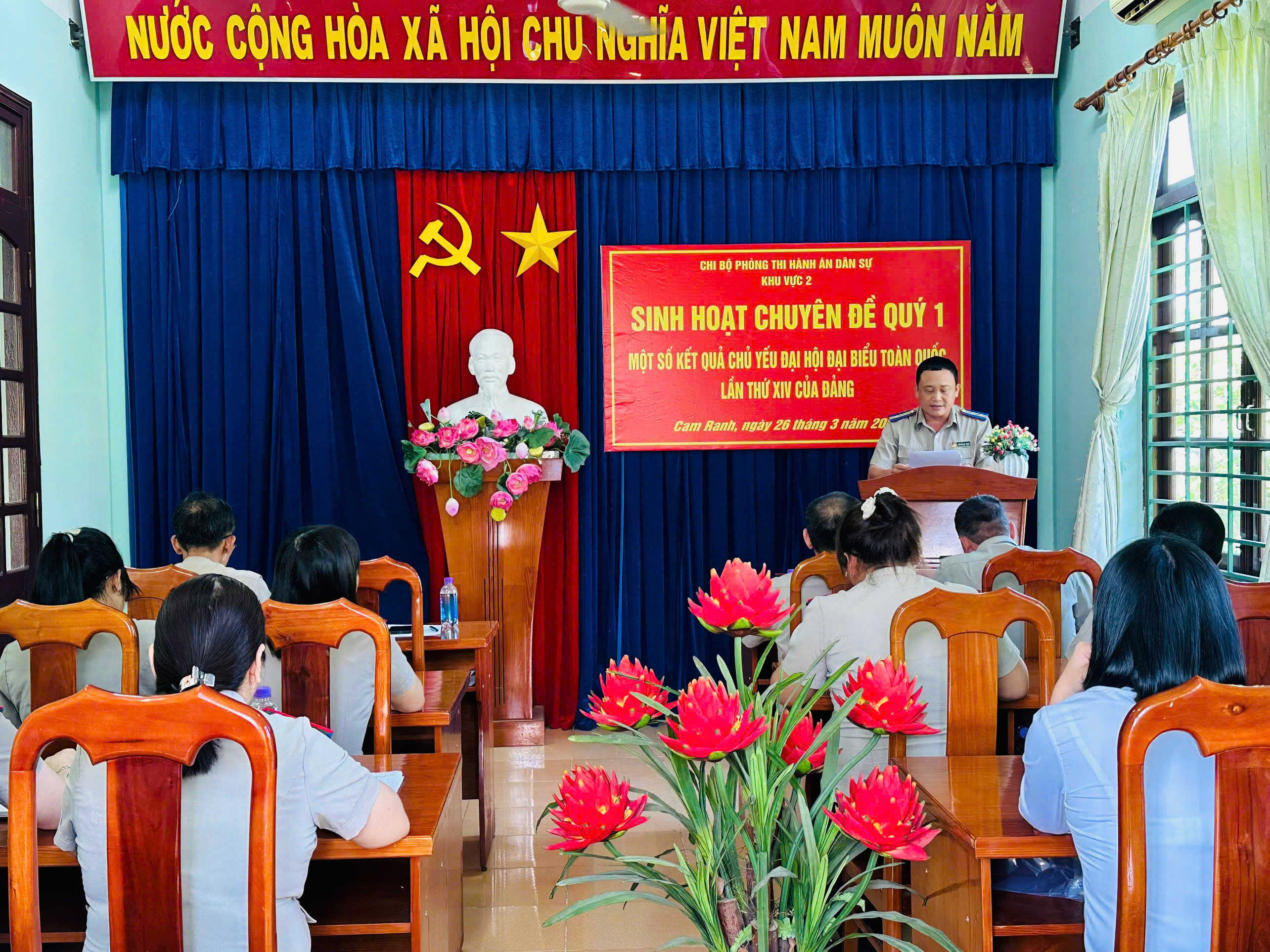 Nhận thức sâu sắc về sự lãnh đạo của Đảng là nhiệm vụ hết sức quan trọng trong việc quản lý chỉ, đạo điều hành trong công tác thi hành án dân sự tại địa phương và để góp phần hoàn thành xuất sắc các chỉ tiêu nhiệm vụ chính trị mà Bộ, Ngành giao cho đơn vị trong năm 2026. Thực hiện công văn số 133-CV/ĐU ngày 11/3/2026 của Đảng ủy Thi hành án dân sự tỉnh Khánh Hòa và kế hoạch số 17-KH/CB ngày 13/3/2026 của Chi bộ Phòng Thi hành án dân sự khu vực 2 về việc tổ chức thực hiện sinh hoạt chuyên đề năm 2026.