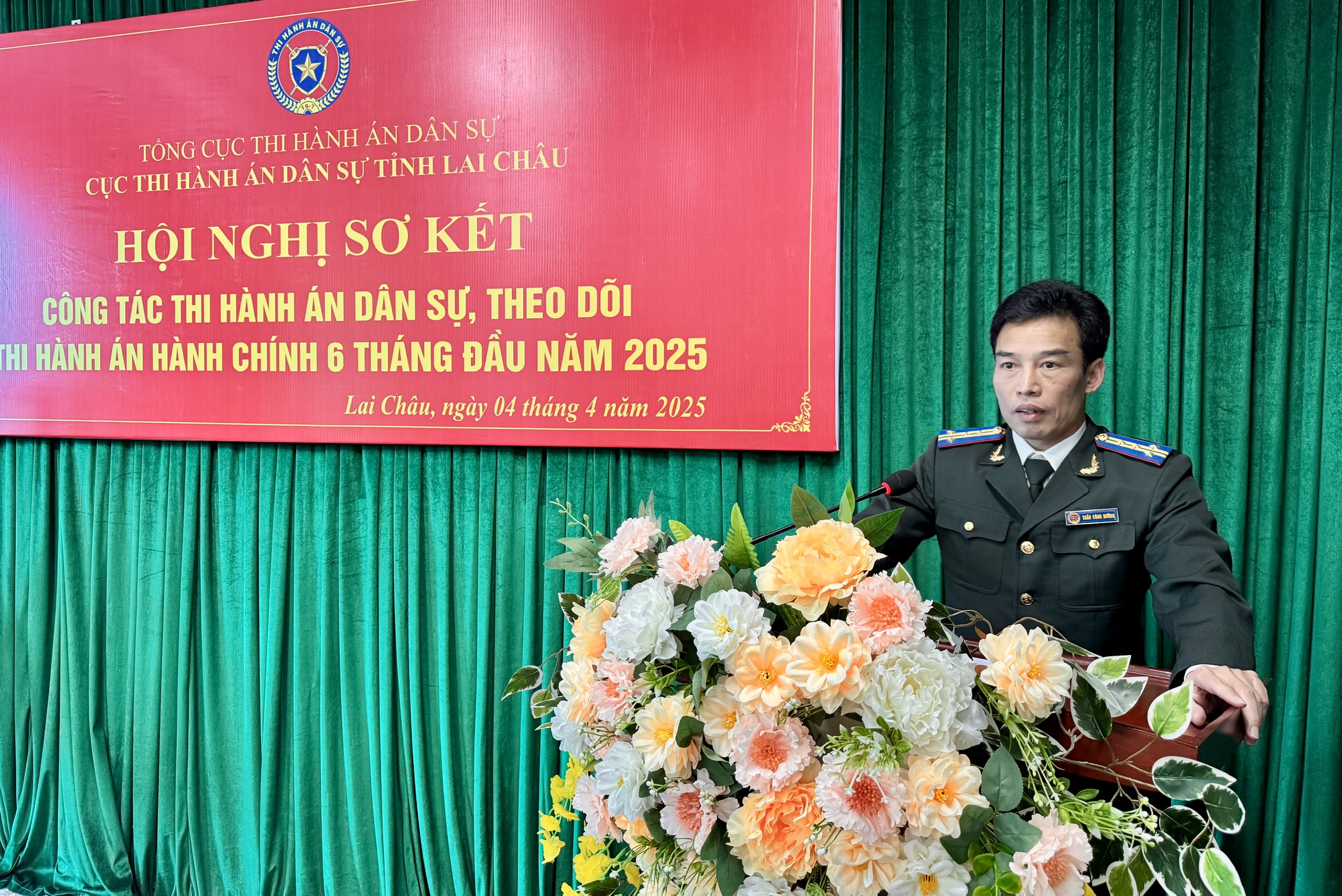 Phát biểu kết luận hội nghị, Cục trưởng Trần Công Hướng yêu cầu Lãnh đạo các đơn vị (1)Tiếp tục đổi mới công tác lãnh đạo, chỉ đạo, điều hành theo hướng sâu sát, kịp thời, quyết liệt, hiệu quả, tuân thủ nghiêm túc chủ trương, quy định của Đảng, pháp luật của Nhà nước, quy chế làm việc, quy định, quy trình nghiệp vụ, chuẩn mực đạo đức, quy tắc ứng xử, công vụ trong hoạt động của cơ quan, đơn vị. Thường xuyên kiểm soát, đôn đốc, chỉ đạo việc thực hiện các nhiệm vụ, công việc theo Kế hoạch công tác, nhằm hoàn thành các chỉ tiêu, nhiệm vụ được giao. (2) Tiếp tục phát huy những kết quả đã đạt được, đồng thời nhận diện đầy đủ, sâu sắc về những tồn tại, hạn chế và nguyên nhân trong việc thực hiện các chỉ tiêu, nhiệm vụ năm 2025; Triển khai kịp thời, đầy đủ, hiệu quả các nhiệm vụ trọng tâm, giải pháp chủ yếu năm 2025 đã được đề ra trong Báo cáo kết quả công tác đã được thông qua tại Hội nghị. (3) Thực hiện đánh giá kỹ công chức về phẩm chất đạo đức, tỉnh thần trách nhiệm, ý thức tổ chức kỷ luật, kỷ cương trong thực hiện nhiệm vụ công vụ, trình độ năng lực chuyên môn, khả năng đáp ứng yêu cầu công việc, kết quả công việc bằng sản phẩm cụ thể, kinh nghiệm, năng lực quản lý (đối với công chức giữ chức vụ lãnh đạo, quản lý) để có kế hoạch, đề xuất các trường hợp không đáp ứng yêu cầu nhiệm vụ đưa vào lộ trình bố trí, sắp xếp cho nghỉ. (4) Tranh thủ, bám sát sự lãnh đạo, chỉ đạo của cấp uỷ, chính quyền địa phương trong tổ chức thi hành án, nhất là trong tổ chức cưỡng chế thi hành các vụ án lớn, phức tạp, có ảnh hưởng đến an ninh chính trị, trật tự an toàn xã hội tại địa phương; trong việc giải quyết các vụ việc trọng điểm, tham nhũng, kinh tế, phức tạp, kéo dài và hỗ trợ kinh phí hoạt động cho các cơ quan THADS trên địa bàn. (5) Rà soát, đánh giá, xây dựng kế hoạch để tổ chức thi hành dứt điểm các vụ việc có điều kiện thi hành án, đặc biệt là các vụ việc có giá trị lớn, các vụ việc thu hồi tài sản trong các vụ việc về tham nhũng, kinh tế, tín dụng ngân hàng. Kiểm soát chặt chẽ các vụ việc có điều kiện trên 01 năm chưa thi hành xong, các vụ việc liên quan đến đấu giá tài sản để có kế hoạch tổ chức dứt điểm, đúng quy trình, quy định của pháp luật, phấn đấu thi hành xong cơ bản các vụ việc THADS có điều kiện thi hành đã ra quyết định thi hành án từ 05 năm trở lên chưa thi hành xong, trừ các vụ việc thi hành theo định kỳ và những vụ việc vì lý do khách quan mà không thể tổ chức thi hành được, phấn đấu hoàn thành và vượt mức các chỉ tiêu, kế hoạch được giao. (6) Tăng cường công tác kiểm tra, tự kiểm tra để kịp thời phát hiện, khắc phục, xử lý nghiêm, chấn chỉnh rút kinh nghiệm đối với các sai sót, vi phạm trong tổ chức thi hành án. Đặc biệt là tăng cường quản lý, kiểm tra công tác kế toán nghiệp vụ thi hành án tại đơn vị, kiểm soát chặt chẽ các khoản thu chi tiền thi hành án. (7) Điều hành dự toán thu, chi ngân sách năm 2025 bảo đảm hiệu quả, tiết kiệm, chống lãng phí. (8) Thường xuyên kiểm tra, rà soát, kiểm kê, có biện pháp quản lý an toàn đối với Kho vật chứng và vật chứng, tài sản tạm giữ trong THADS. (9) Trong quá trình hướng dẫn nghiệp vụ, giải quyết khiếu nại, tố cáo, tổ chức thi hành án, thẩm tra hồ sơ thi hành án và xử lý kiến nghị, kháng nghị của cơ quan có thẩm quyền phải thường xuyên đánh giá, nhận diện những vụ việc có nguy cơ phát sinh bồi thường nhà nước để kịp thời xử lý, giảm thiểu đến mức thấp nhất các nguy cơ dẫn đến bồi thường nhà nước và đảm bảo tài chính. (10) Chủ động, kiên quyết phòng ngừa tiêu cực, tham nhũng, sai phạm trong THADS. Tiếp tục quán triệt, triển khai thực hiện có hiệu quả các nghị quyết, văn bản của Đảng, Nhà nước về phòng chống tham nhũng, lãng phí, tiêu cực đặc biệt là Chỉ thị số 04-CT/TW ngày 02/6/2021 của Ban Bí thư về tăng cường sự lãnh đạo của Đảng đối với công tác thu hồi tài sản bị thất thoát, chiếm đoạt trong các vụ án về kinh tế, tham nhũng; Quy định số 132-QĐ/TW ngày 27/10/2023 của Bộ chính trị về kiểm soát quyền lực phòng chống tham nhũng, tiêu cực trong hoạt động điều tra, truy tố, xét xử thi hành án đã được Tổng Cục trưởng Tổng cục THADS ban hành tại Quyết định số 187/QĐ-TCTHADS ngày 18/02/2025 Cẩm nang về thực hiện Quy định 132 của Bộ Chính trị trong Hệ thống THADS, trong đó nêu rõ lưu ý về các hành vi, trách nhiệm gắn với các tập thể cá nhân trong Hệ thống THADS. Đối với các vị trí công tác và ngạch công chức chuyên ngành tại Cục THADS cấp tỉnh và Chi cục THADS cấp huyện cần chấp hành nghiêm các nhóm hành vi 06 KHÔNG, 16 CẤM, 03 TRÁCH NHIỆM trong hoạt động thi hành án. (11) Đẩy mạnh ứng dụng cô