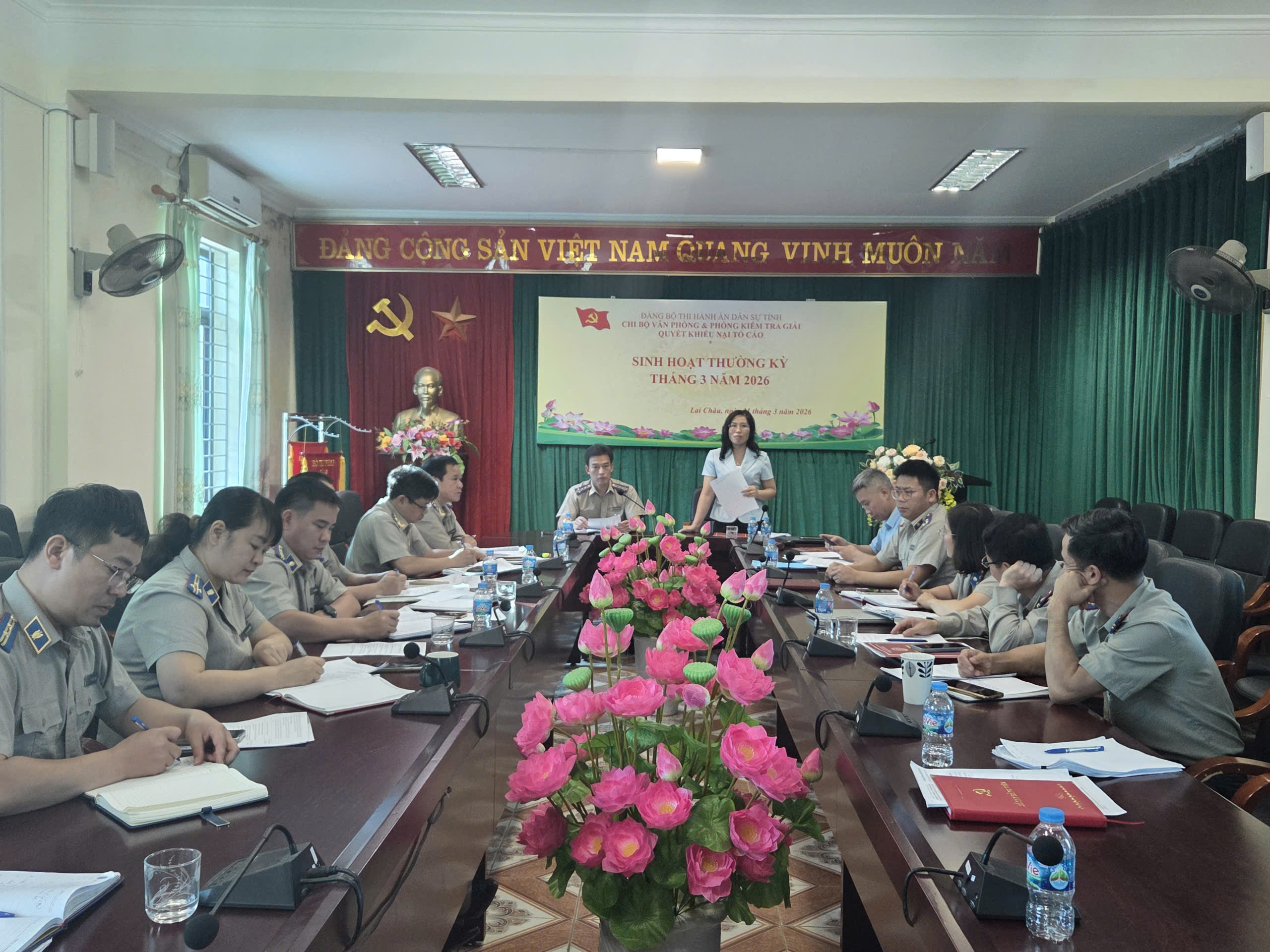 Tại buổi sinh hoạt, Chi bộ Văn phòng và Phòng Kiểm tra, giải quyết khiếu nại, tố cáo đã thực hiện đầy đủ, nghiêm túc quy trình sinh hoạt chi bộ thường kỳ theo quy định. Nội dung sinh hoạt tập trung đánh giá kết quả lãnh đạo thực hiện nhiệm vụ chính trị, công tác xây dựng Đảng trong tháng 3, đồng thời đề ra phương hướng, nhiệm vụ trọng tâm tháng 4/2026. Nội dung sinh hoạt bám sát chức năng, nhiệm vụ của chi bộ, gắn với yêu cầu nâng cao chất lượng công tác chuyên môn, nhất là trong lĩnh vực kiểm tra, giải quyết khiếu nại, tố cáo và công tác tham mưu, tổng hợp của Văn phòng. Phần thảo luận diễn ra dân chủ, thẳng thắn, đi vào trọng tâm; các đảng viên tích cự phát biểu, làm rõ những tồn tại, hạn chế và đề xuất nhiều giải pháp thiết thực nhằm nâng cao hiệu quả thực hiện nhiệm vụ.