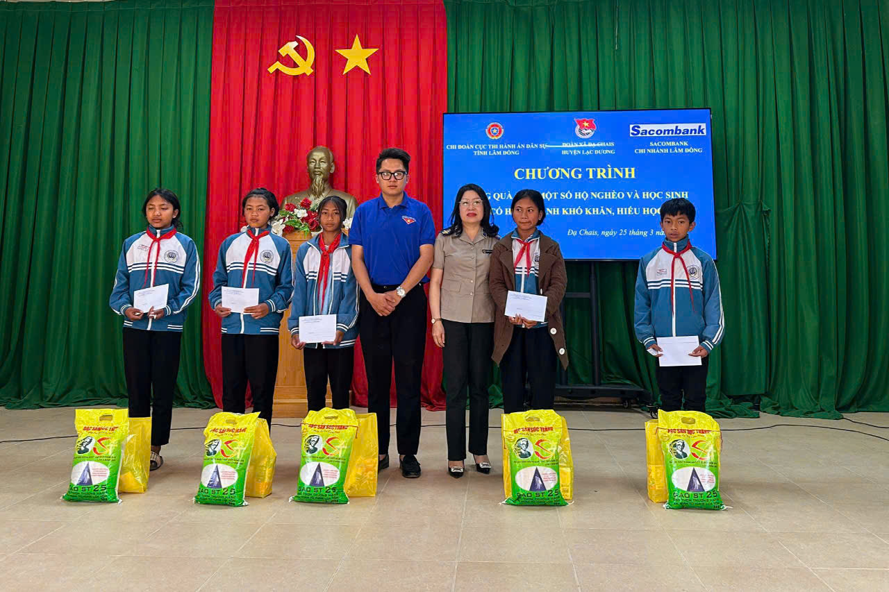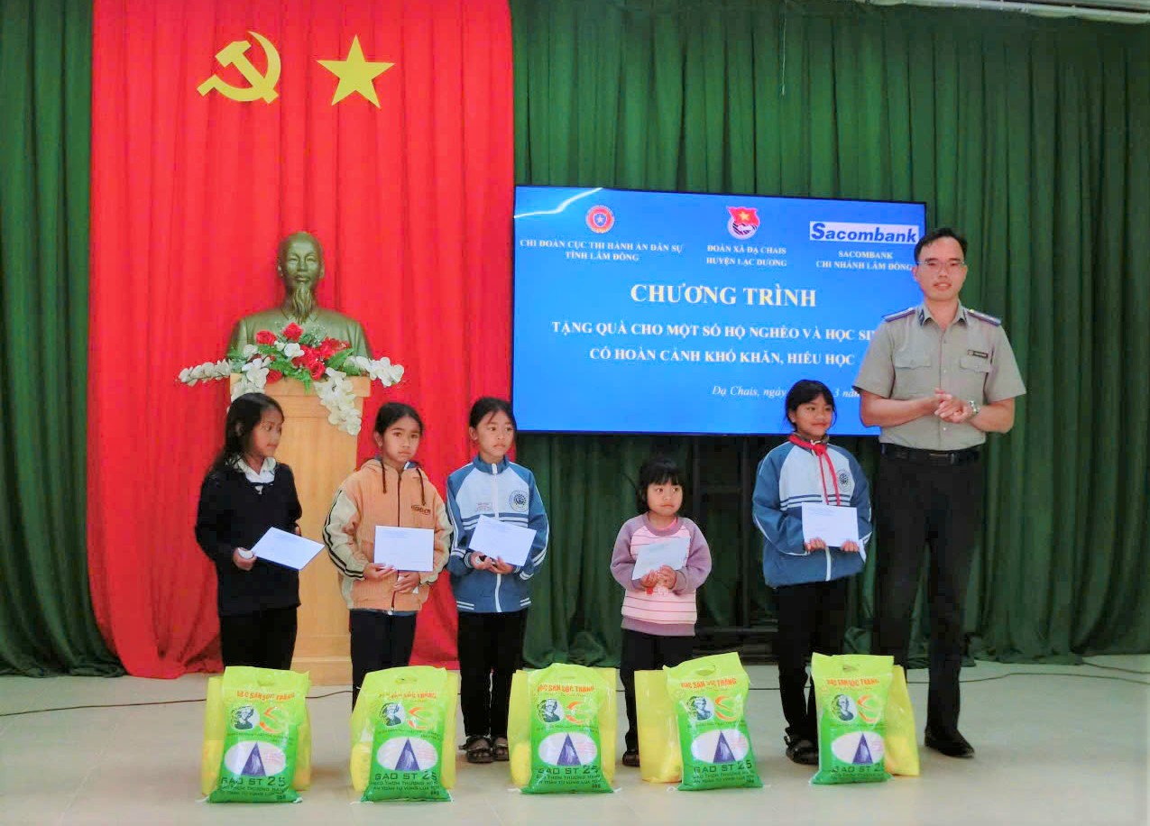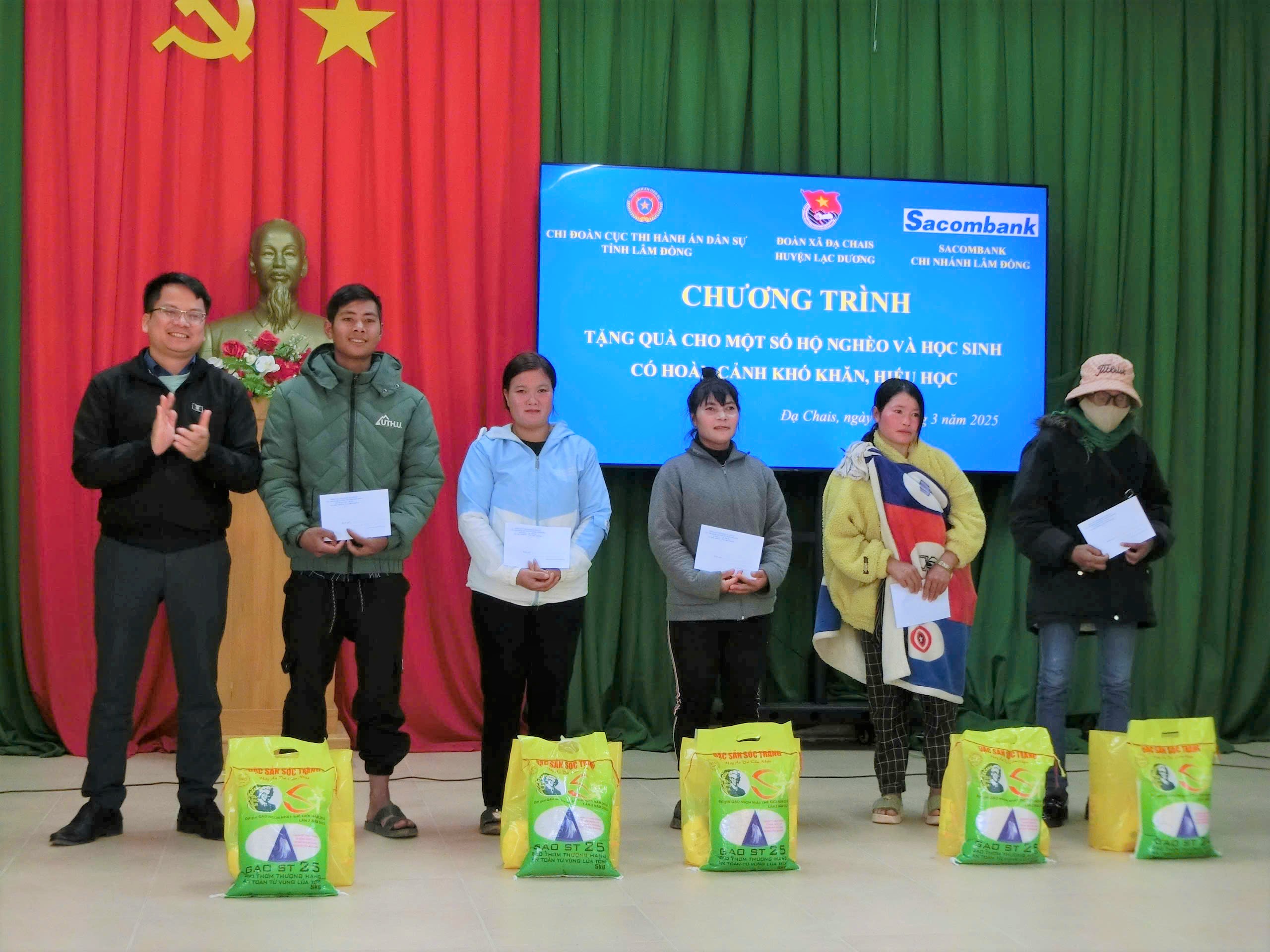 Sáng ngày 25/3/2025, Chi đoàn Cục Thi hành án dân sự tỉnh Lâm Đồng phối hợp với Đoàn xã Đạ Chais cùng đơn vị tài trợ là Ngân hàng TMCP Sài Gòn Thương Tín (Sacombank) – Chi nhánh Lâm Đồng tổ chức Chương trình trao tặng quà cho các hộ gia đình chính sách và các em học sinh có hoàn cảnh khó khăn trên địa bàn.