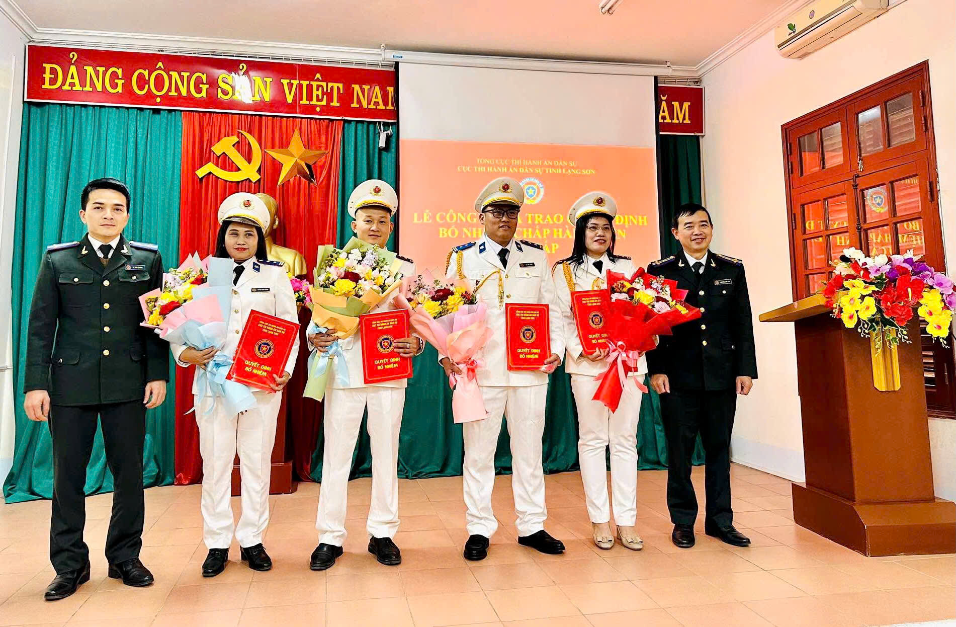 Ngày 06 tháng 03 năm 2025, Cục Thi hành án dân sự tỉnh Lạng Sơn đã tổ chức Lễ công bố và trao Quyết định bổ nhiệm Chấp hành viên sơ cấp đối với 04 đồng chí trúng tuyển kỳ thi tuyển Chấp hành viên sơ cấp năm 2024.