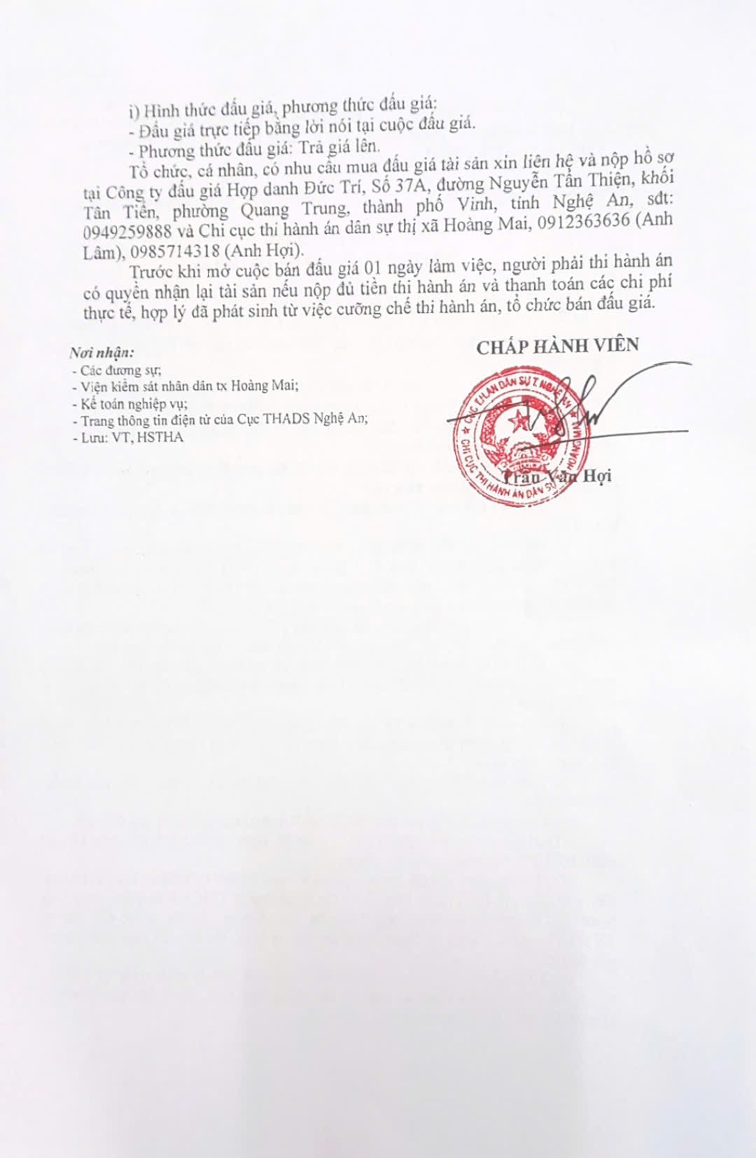 Thông báo bán đấu giá tài sản