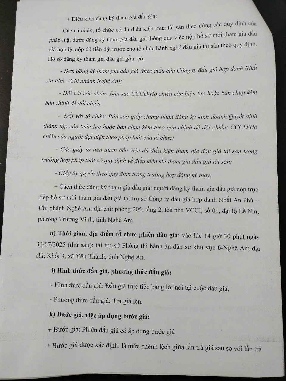 Thông báo bán đấu giá tài sản