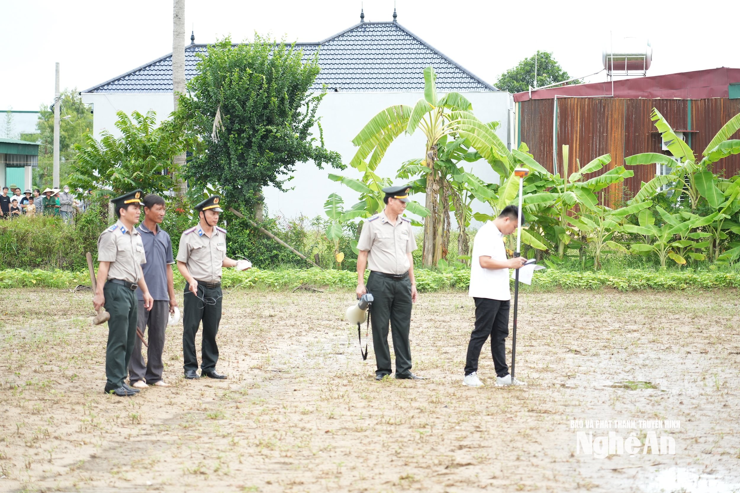 Tại buổi cưỡng chế, Thi hành án dân sự tỉnh Nghệ An đã phối hợp với các cơ quan chuyên môn về đất đai, các ngành, đơn vị có liên quan và Chính quyền địa phương đo đạc, kiểm tra lại mốc giới, ranh giới định vị thửa đất phải giao...