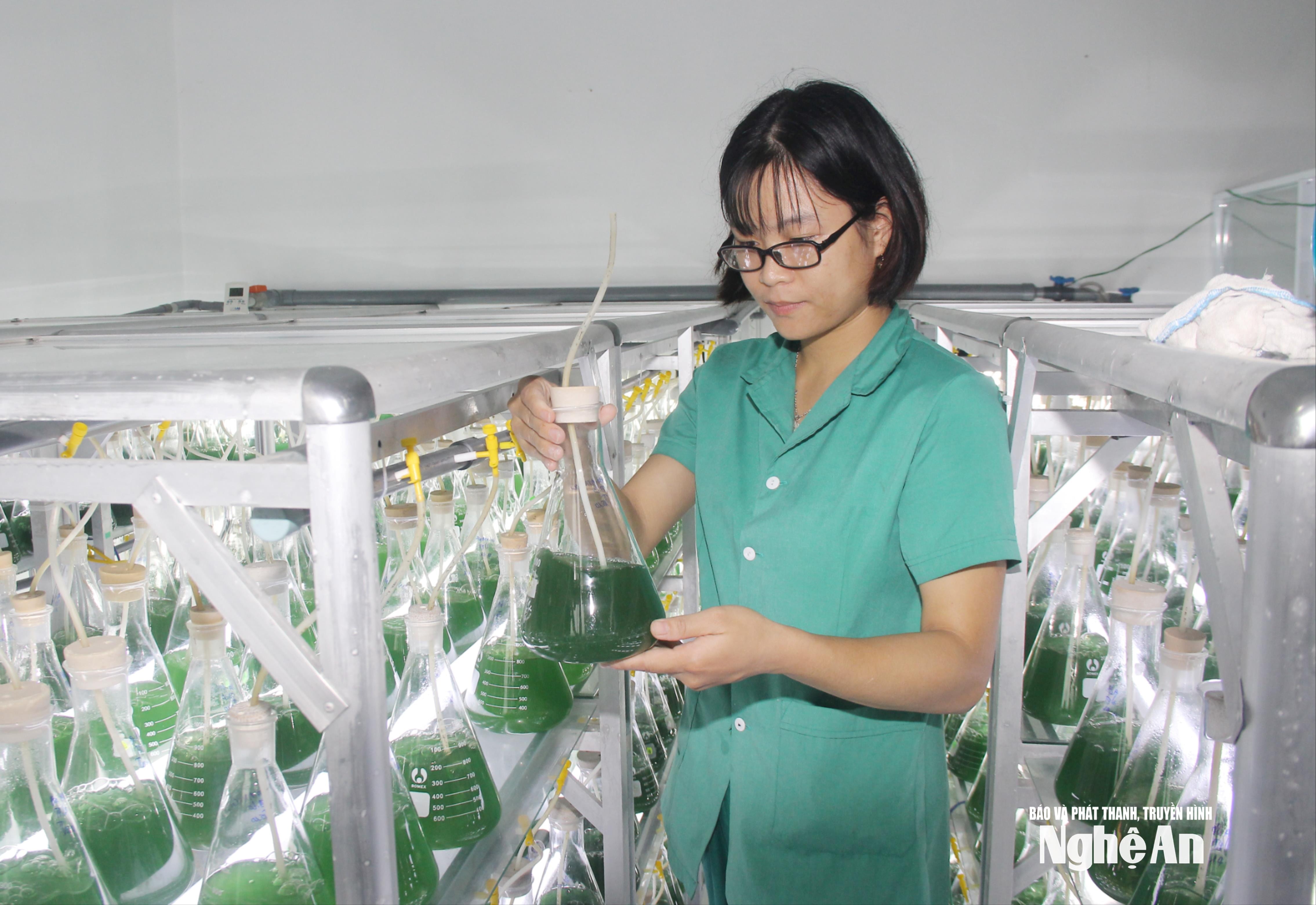 Dự án nuôi trồng và sản xuất chế biến các sản phẩm từ tảo xoắn tại xã Quỳnh Anh. Ảnh: Mai Hoa