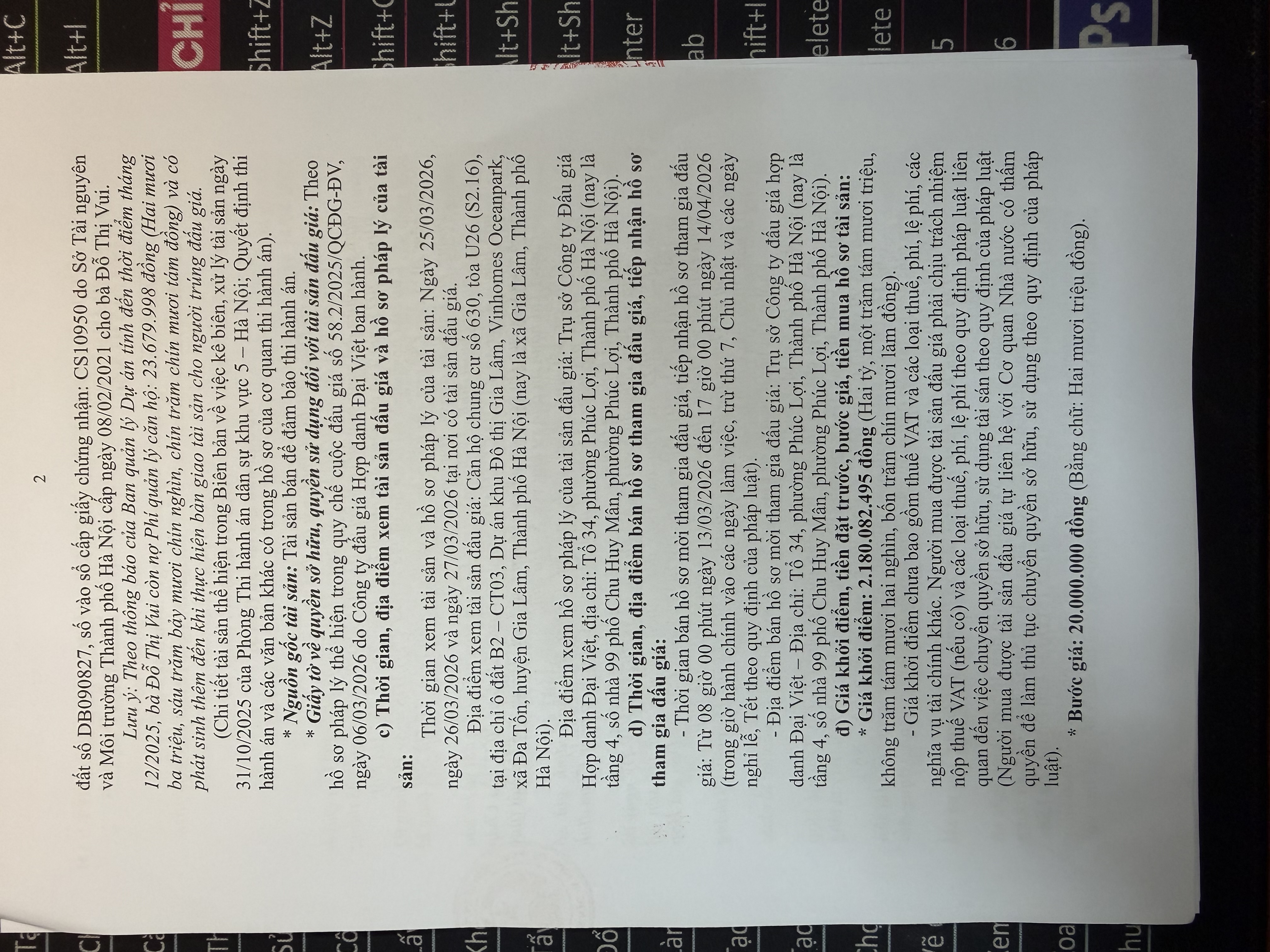 Phòng Thi hành án dân sự khu vực 5 - Hà Nội thông báo về việc bán đấu giá tài sản (Lần 3): 1247/THADS.KV5-NV ngày 10/3/2026
