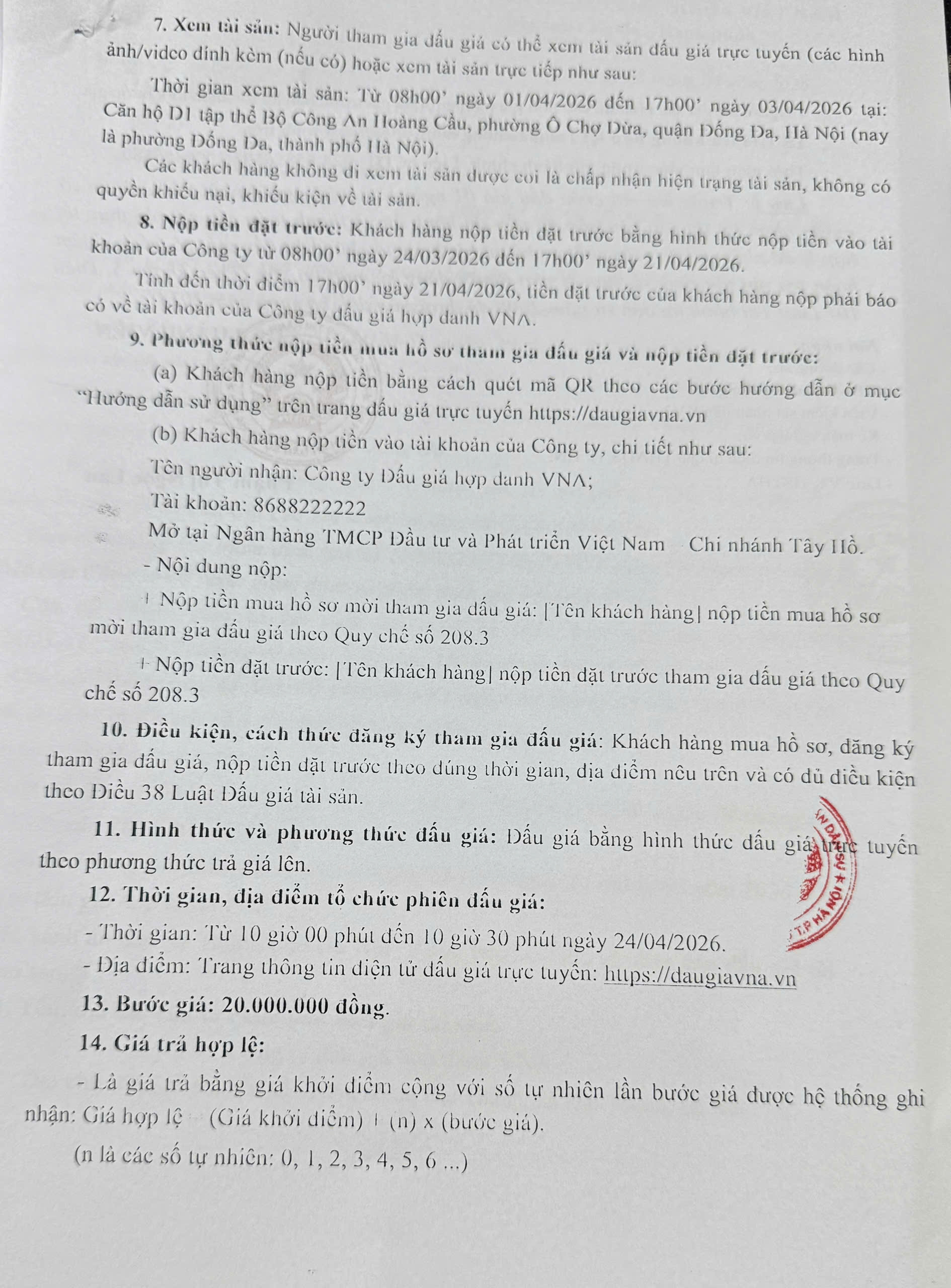 Phòng thi hành án dân sự khu vực 2-Hà Nội thông báo về việc bán đấu giá tài sản số 1842/TB-THADS ngày 25/3/2026