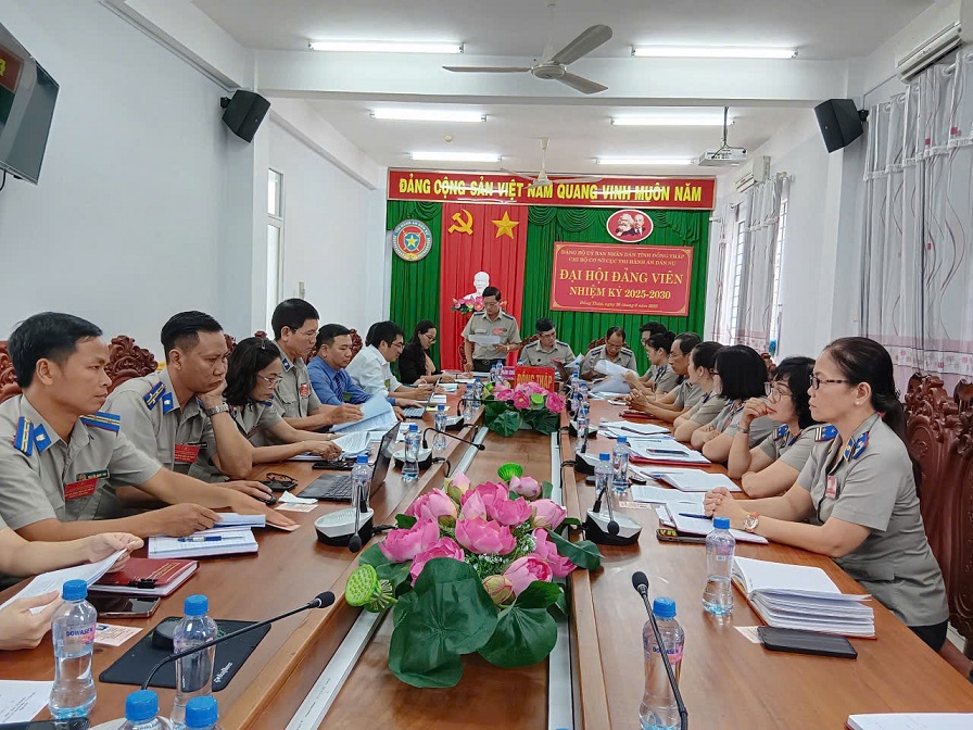 Ngày 20 tháng 6 năm 2025, Chi bộ cơ sở Cục Thi hành án dân sự tỉnh Đồng Tháp đã long trọng tổ chức Đại hội lần thứ IV, nhiệm kỳ 2025 – 2030. Đại hội được tiến hành trong không khí trang nghiêm, dân chủ, đoàn kết, đúng Điều lệ Đảng và các văn bản chỉ đạo của cấp trên, cụ thể là Kế hoạch số 21-KH/ĐU ngày 26/5/2025 của Đảng ủy Uỷ ban nhân dân tỉnh Đồng Tháp thực hiện Chỉ thị số 45-CT/TW của Bộ Chính trị khoá XIII về đại hội đảng bộ các cấp tiến tới Đại hội đại biểu toàn quốc lần thứ XIV của Đảng.