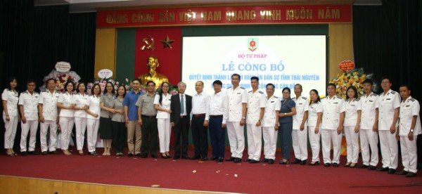 Phó Bí thư chuyên trách Đảng ủy Bộ Tư pháp chụp ảnh lưu niệm với THADS tỉnh Thái Nguyên.