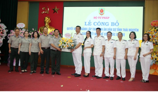 Tại buổi Lễ, đại diện Cục quản lý THADS, Bộ Tư pháp đã công bố Quyết định thành lập THADS tỉnh Thái Nguyên và các Quyết định bổ nhiệm lãnh đạo THADS tỉnh Thái Nguyên.