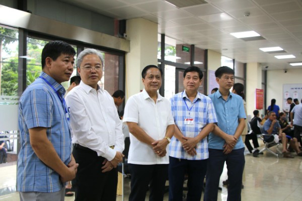 Ông Nguyễn Quang Thái, Phó Bí thư chuyên trách Đảng ủy Bộ Tư pháp thăm và làm việc tại Trung tâm Phục vụ hành chính công phường Phan Đình Phùng.