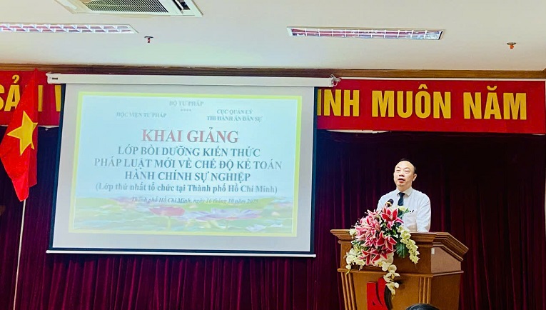 Sáng ngày 16/10/2025 tại Học viện Tư pháp cơ sở thành phố Hồ Chí Minh đã tổ chức khai giảng tập huấn lớp “Bồi dưỡng kiến thức pháp luật mới về chế độ kế toán hành chính sự nghiệp - lớp thứ 1 tại cơ sở HGọc viện Tư pháp cơ sở thành phố Hồ Chí Minh” dành cho công chức, viên chức đội ngũ kế toán viên các cơ quan Thi hành án dân sự. Lớp tập huấn diễn ra trong 2 ngày từ ngày 16/10 đến ngày 17/10/2025.