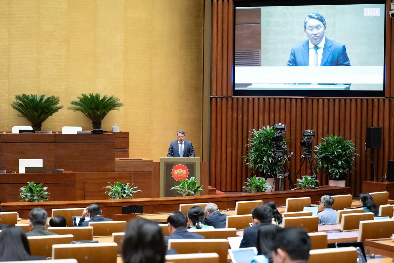 Tiếp tục chương trình Kỳ họp thứ 10, Quốc hội khóa XV, sáng 4/11, thừa ủy quyền Thủ tướng Chính phủ, Bộ trưởng Bộ Tư pháp Nguyễn Hải Ninh đã trình bày Tờ trình dự án Luật Thi hành án dân sự (THADS) (sửa đổi)