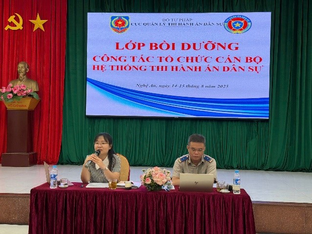 Trong 2 ngày 14-15/8/2025, tại Nghệ An, Cục Quản lý Thi hành án dân sự (THADS) tổ chức Lớp bồi dưỡng công tác tổ chức cán bộ cho công chức, viên chức hệ thống THADS. Lớp bồi dưỡng nhằm cập nhật các quy định mới, nâng cao tình độ chuyên môn, kỹ năng nghiệp vụ công tác tổ chức cán bộ cho công chức làm công tác tổ chức cán bộ trong hệ thống THADS; kịp thời hướng dẫn, tháo gỡ vướng mắc, khó khăn trong công tác tổ chức cán bộ sau sắp xếp; góp phần củng cố, kiện toàn, nâng cao hiệu quả công tác tổ chức cán bộ trong Hệ thống.