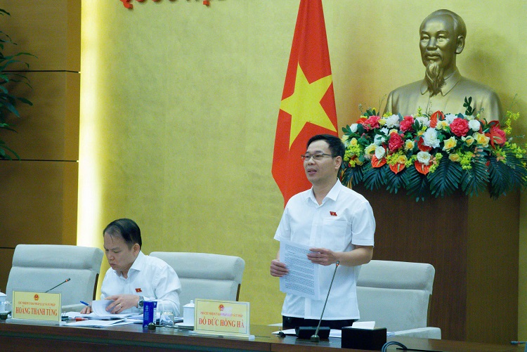 Phó Chủ nhiệm Ủy ban Pháp luật và Tư pháp Đỗ Đức Hồng Hà trình bày Báo cáo tóm tắt thẩm tra Dự án Luật THADS (sửa đổi). Ảnh: QH