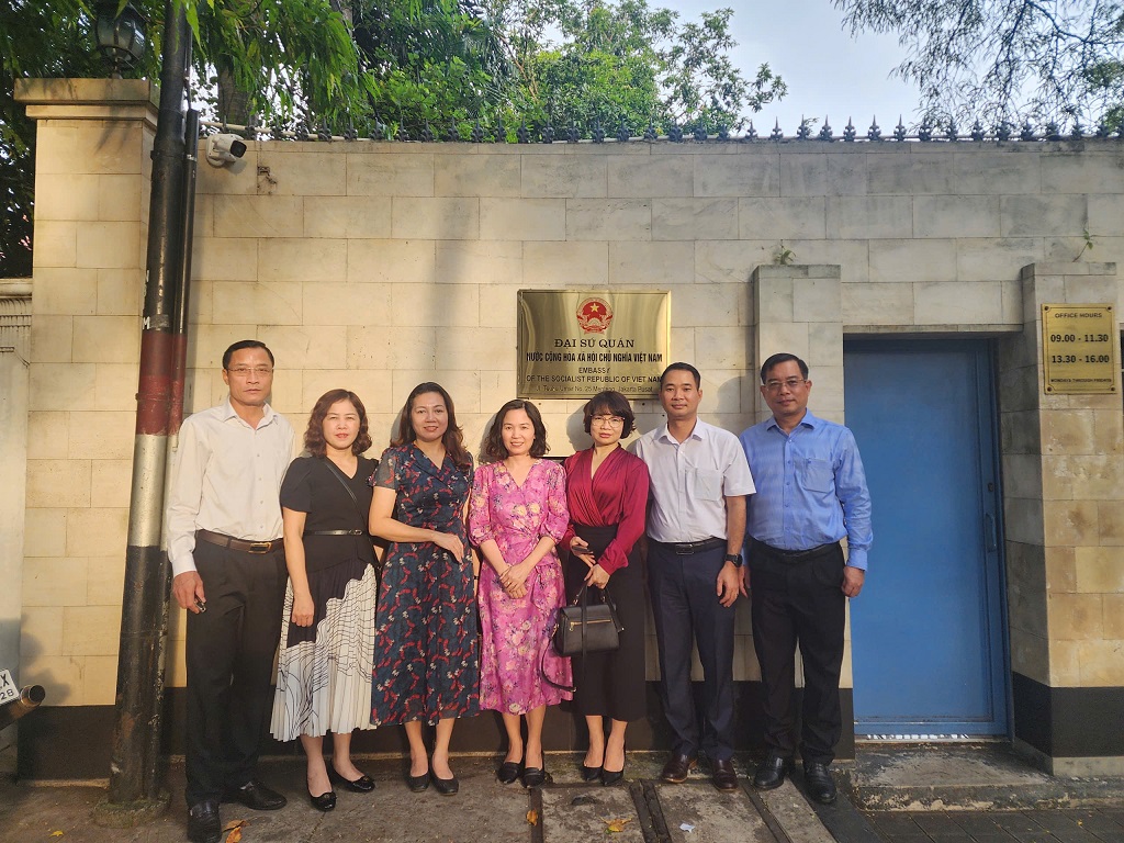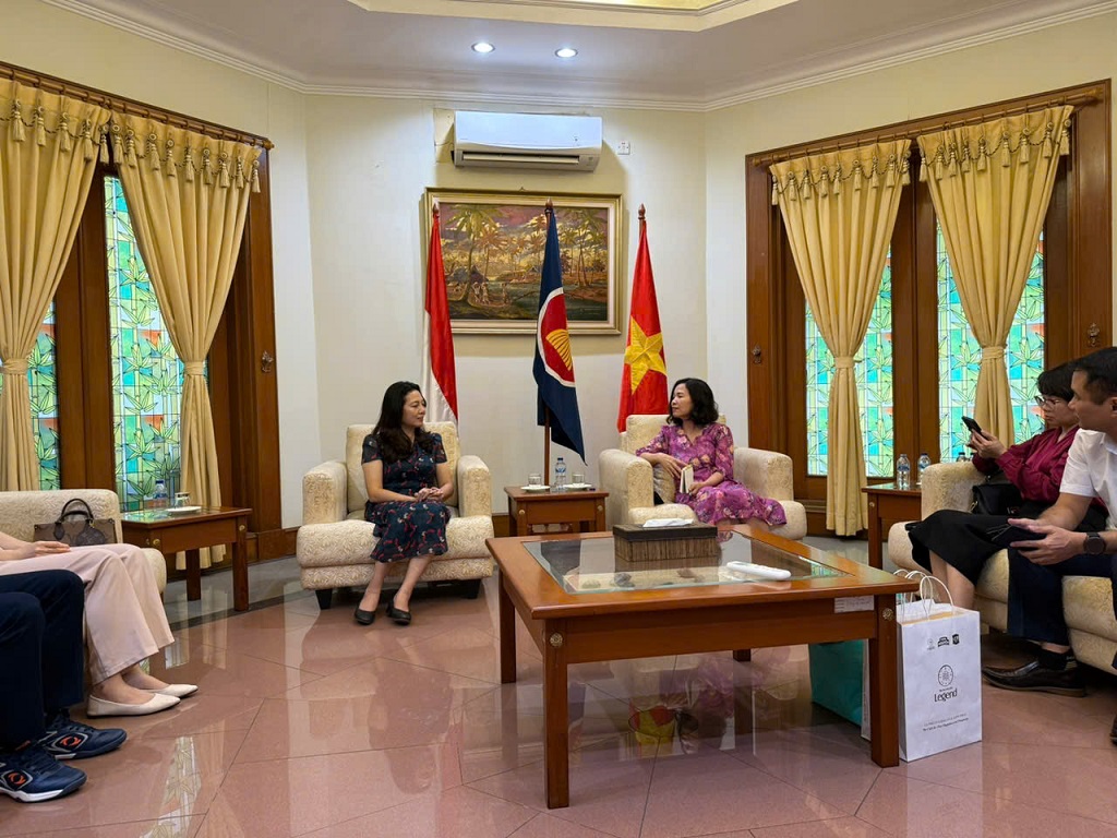 Ngay trong chiều 25/11, trước chương trình làm việc chính thức, đoàn đã đến thăm và trao đổi với các cán bộ ngoại giao tại Đại sứ quán Việt Nam tại Indonesia. Tiếp đoàn có bà Vũ Thị Anh Phương – Tham tán Công sứ, cùng lãnh đạo các bộ phận chuyên môn của Đại sứ quán.