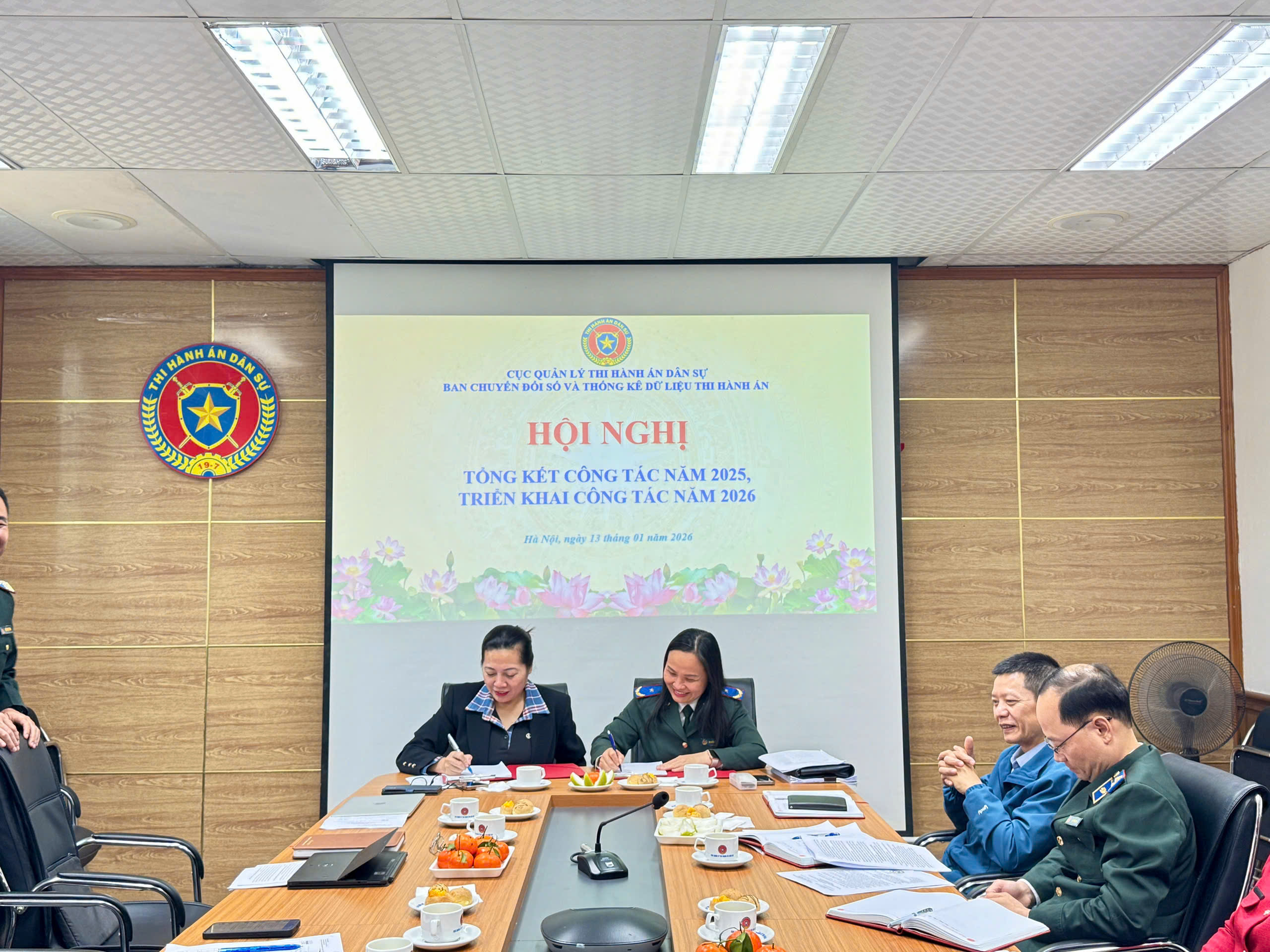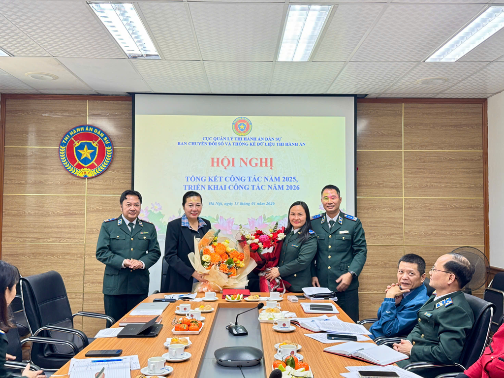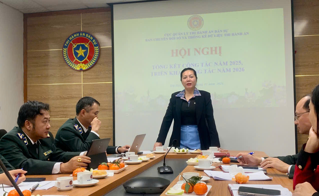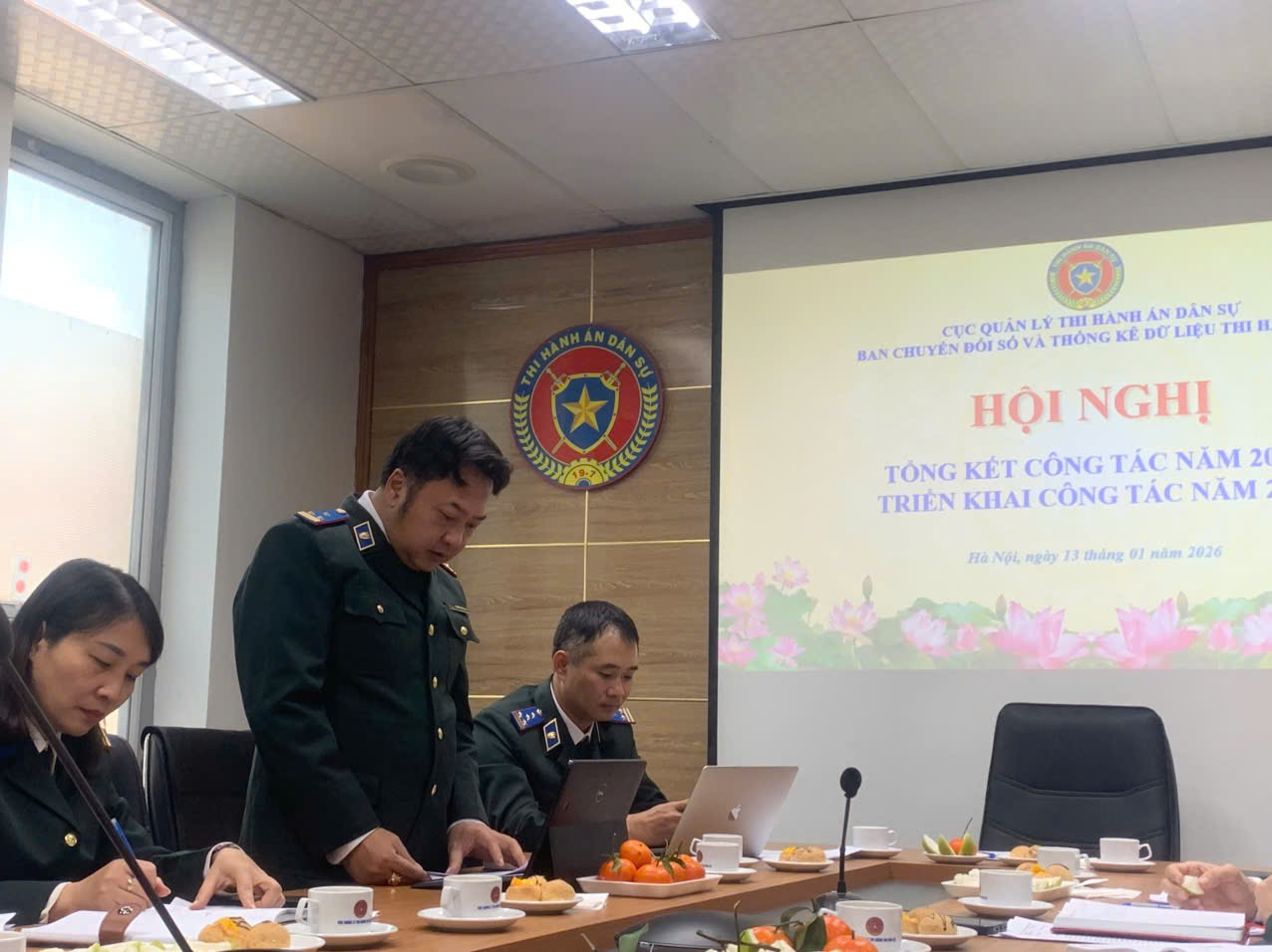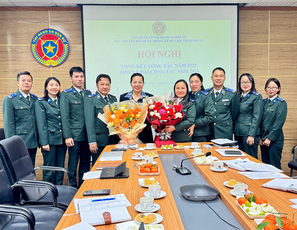 Chiều ngày 13/01/2026, Tại trụ sở Cục Quản lý Thi hành án dân sự (THADS), Ban Chuyển đổi số và thống kê dữ liệu thi hành án đã tổ chức Hội nghị tổng kết công tác năm 2025, triển khai nhiệm vụ năm 2026. Tham dự Hội nghị có đồng chí Phó Cục trưởng Trần Thị Phương Hoa chủ trì và chỉ đạo Hội nghị. Cùng tham dự có đồng chí Phó Cục trưởng Nguyễn Thị Hoàng Giang, đại diện Lãnh đạo các đơn vị: Văn phòng Cục, Ban Tổ chức cán bộ và Ban Kế hoạch - Tài chính cùng toàn thể Lãnh đạo và công chức Ban Chuyển đổi số và thống kê dữ liệu thi hành án.