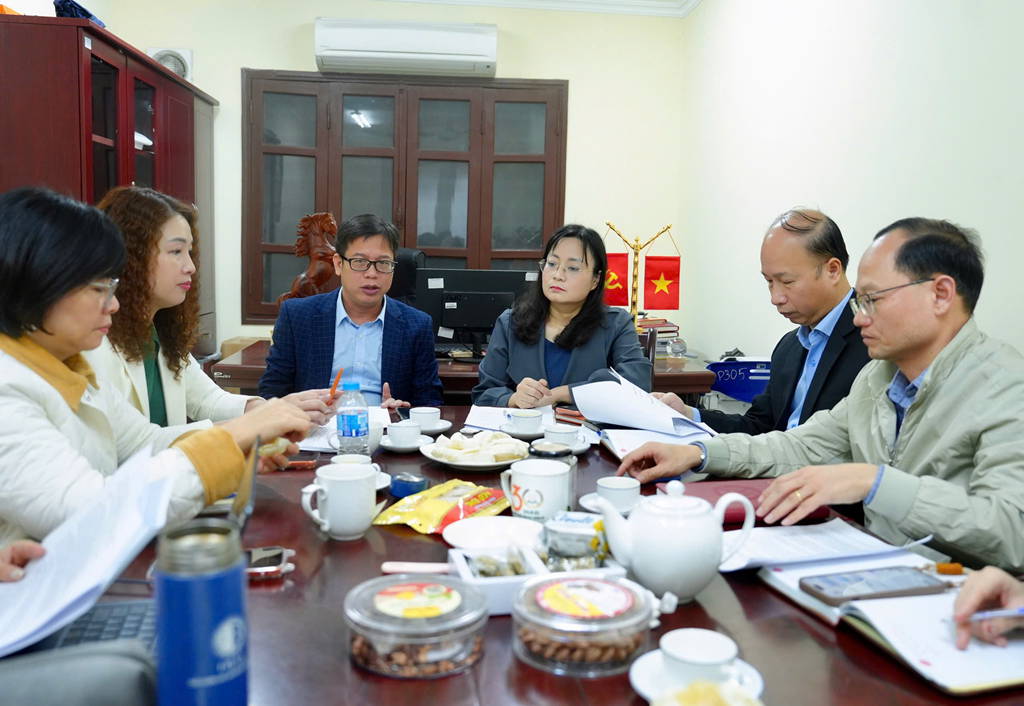 Tại buổi làm việc, lãnh đạo hai đơn vị đã nghe và thảo luận Báo cáo kết quả công tác phối hợp truyền thông năm 2025 giữa Cục Quản lý THADS và Báo Pháp luật Việt Nam.