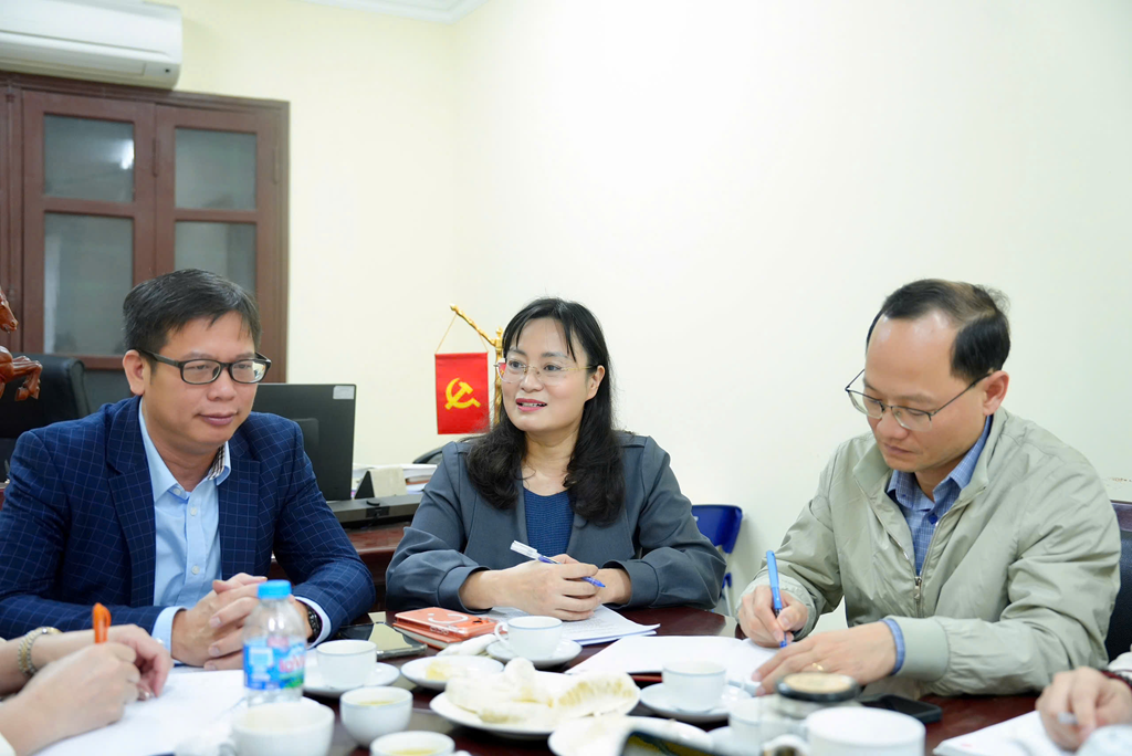 Phó Cục trưởng Phan Huy Hiếu, Nhà báo Thu Hằng báo Pháp Luật Việt Nam phát biểu tại buổi làm việc