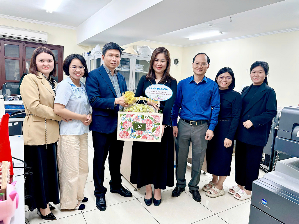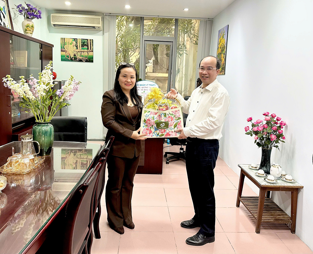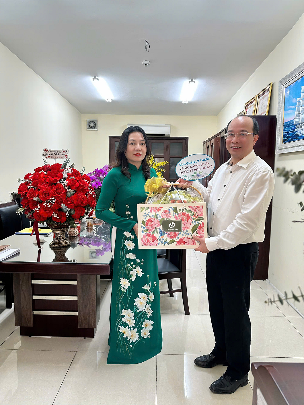 Cục trưởng Nguyễn Thắng Lợi tặng quà chúc mừng nhân ngày quốc tế 8/3 tới Phó Cục trưởng Cục Quản lý THADS Nguyễn Thị Hoàng Giang