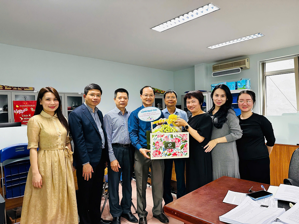 Cục trưởng Nguyễn Thắng Lợi tặng quà chúc mừng nhân ngày quốc tế 8/3 tới Phó Cục trưởng Cục Quản lý THADS Trần Thị Phương Hoa