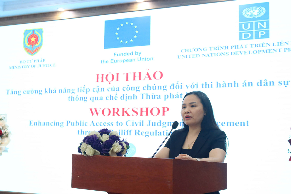 Bà Nguyễn Thị Thanh Hải, Cố vấn trưởng Dự án EU JULE II, UNDP Việt Nam phát biểu tại Hội thảo