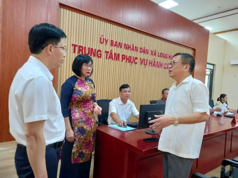 Thứ trưởng Đặng Hoàng Oanh cùng Đoàn công tác đã thăm Trung tâm Phục vụ hành chính công tại xã Long Hưng và nghe báo cáo tình hình hoạt động của Trung tâm sau quá trình vận hành.