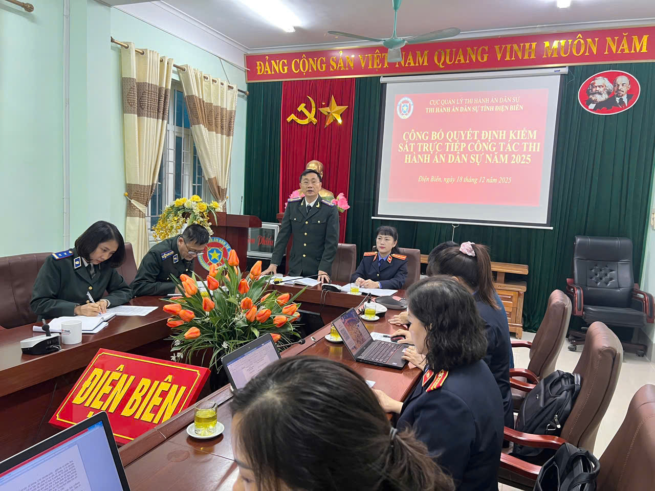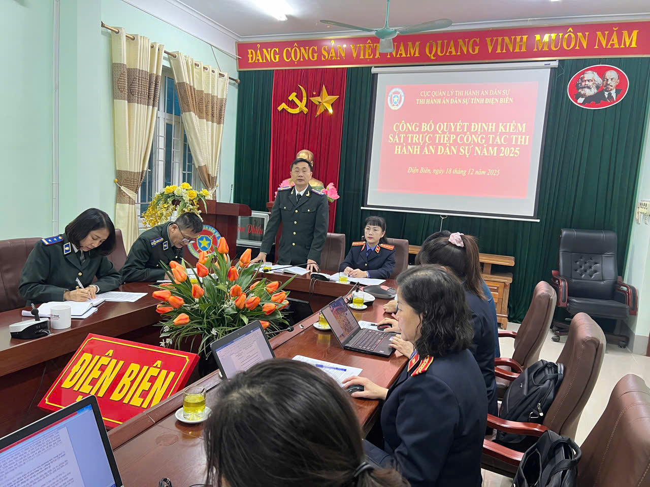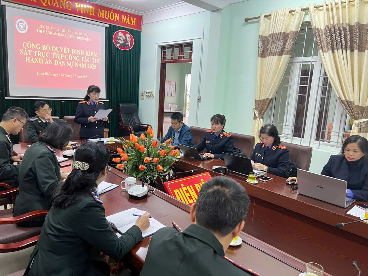 Đoàn trực tiếp kiểm sát do đồng chí Nguyễn Thị Nguyệt Hoa – Phó Viện trưởng Viện kiểm sát nhân dân tỉnh Điện Biên làm trưởng đoàn cùng các đồng chí lãnh đạo và kiểm sát viên Phòng 8 Viện kiểm sát nhân dân tỉnh là thành viên, thời gian trực tiếp kiểm sát 05 ngày làm việc, (từ ngày 18/12/2025 đến 24/12/2025). Tham dự Đoàn kiểm sát còn có đồng chí Bùi Khắc Thái – Phó Trưởng ban Dân chủ pháp luật và Phản biện xã hội, UBMTTQVN tỉnh Điện Biên.