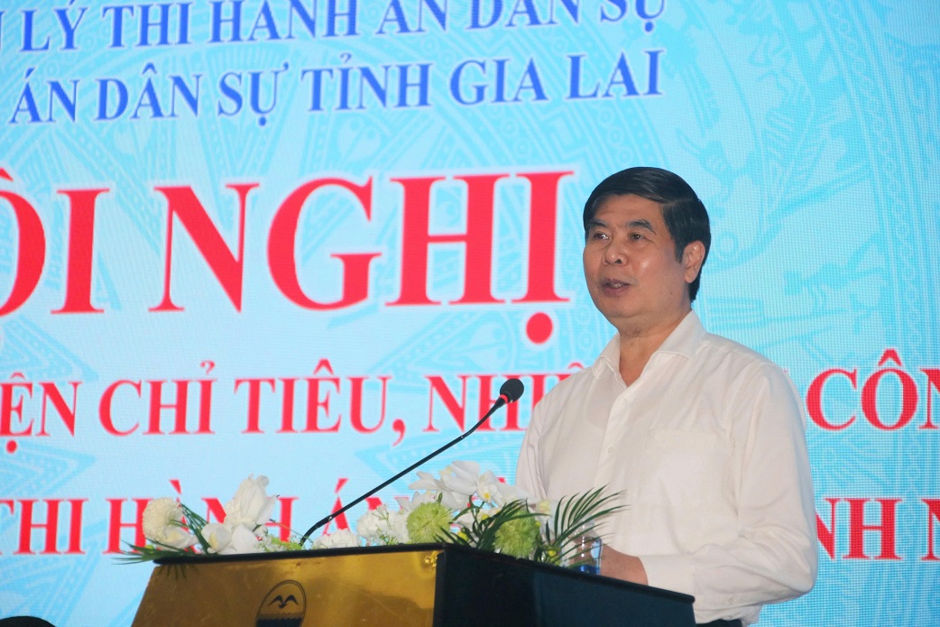 Trên cơ sở báo cáo kết quả công tác, ý kiến tham luận tại hội nghị, đồng chí Nguyễn Thắng Lợi, Cục trưởng Cục Quản lý THADS đồng tình rất cao ý kiến phát biểu chỉ đạo của đồng chí Lâm Hải Giang, Phó chủ tịch UBND tỉnh, đồng thời chỉ đạo một số nội dung để Thi hành án dân sự tỉnh Gia Lai thực hiện trong thời gian đến: Đề nghị Thi hành án dân sự tỉnh Gia Lai tiếp tục triển khai, thực hiện nghiêm các đường lối, chủ trương của Đảng, chính sách, pháp luật của Nhà nước, đặc biệt là Quy định số 132-QĐ/TW ngày 27/10/2023 của Bộ Chính trị về kiểm soát quyền lực, phòng, chống tham nhũng, tiêu cực trong hoạt động điều tra, truy tố, xét xử, thi hành án; kịp thời xây dựng kế hoạch tổ chức tuyên truyền, quán triệt, thực hiện Luật THADS năm 2025 (sửa đổi). Rà soát, tổ chức thi hành án đối với các vụ việc năm trước chuyển sang, các vụ việc kéo dài đến nay chưa thi hành xong để xây dựng kế hoạch tổ chức thi hành án phù hợp với tình hình thực tế, tính chất vụ việc, không để kéo dài; tập trung giải quyết, thi hành các vụ việc phức tạp, khó thi hành, các vụ việc có khiếu nại, tố cáo; án tín dụng, ngân hàng; án tham những, kinh tế. Phát huy vai trò tham mưu UBND tỉnh về theo dõi thi hành án hành chính; kịp thời báo cáo Chủ tịch UBND tỉnh, Trưởng Ban Chỉ đạo Thi hành án dân sự tỉnh đối với những vụ việc thi hành án hành chính để kéo dài, không thi hành; các vụ việc thi hành án dân sự có khó khăn, vướng mắc để chỉ đạo giải quyết; kịp thời ký kết quy chế phối hợp liên ngành; tăng cường cải cách thủ tục hành chính; đẩy mạnh ứng dụng công nghệ thông tin, chuyển đổi số; triển khai, thực hiện tốt Nền tảng số trong THADS; kịp thời kiểm tra, uốn nắn, chấn chỉnh những sai sót trong công tác, xử lý nghiêm những vi phạm pháp luật hoặc biểu hiện tiêu cực trong quá trình thực thi nhiệm vụ. Đồng chí Cục trưởng Cục Quản lý THADS mong muốn UBND tỉnh, các sở ban ngành, UBND các xã, phường tiếp tục quan tâm chỉ đạo, phối hợp thường xuyên, kịp thời trong công tác THADS, giúp cho cơ quan THADS tháo gỡ khó khăn, vướng mắc, thực hiện tốt các chỉ tiêu, nhiệm vụ được giao.