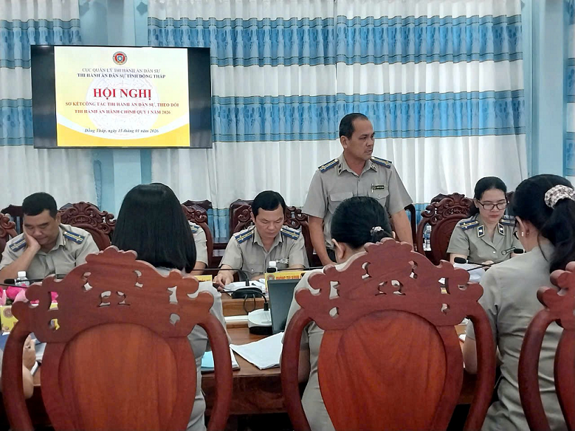 Thực hiện Chương trình công tác năm 2026 của Thi hành án dân sự tỉnh Đồng Tháp, ngày 15/01/2026, Thi hành án dân sự (THADS) tỉnh Đồng Tháp đã tổ chức Hội nghị sơ kết công tác Quý I năm 2026 nhằm đánh giá kết quả thực hiện nhiệm vụ 03 tháng đầu năm, xác định phương hướng, nhiệm vụ và giải pháp trọng tâm trong thời gian tiếp theo.
