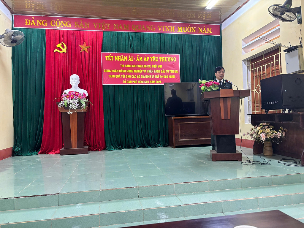 Thay mặt Cấp ủy, Lãnh đạo THADS tỉnh Lào Cai, cùng toàn thể cán bộ, công chức, người lao động các cơ quan THADS trên địa bàn tỉnh, đồng chí Trần Văn Tường, Trưởng THADS tỉnh cảm ơn các đồng chí đại diện lãnh đạo đại diện Chi bộ, Tổ dân phố, Đảng ủy, UBND phường Văn Phú, đã phối hợp để hoàn thành tốt buổi trao tặng quà cho bà con, chúc toàn thể bà con nhân dân Tổ dân phố Ngòi Sen, phường Văn Phú, tỉnh Lào Cai đón một năm mới 2026 An khang, thịnh vượng./.