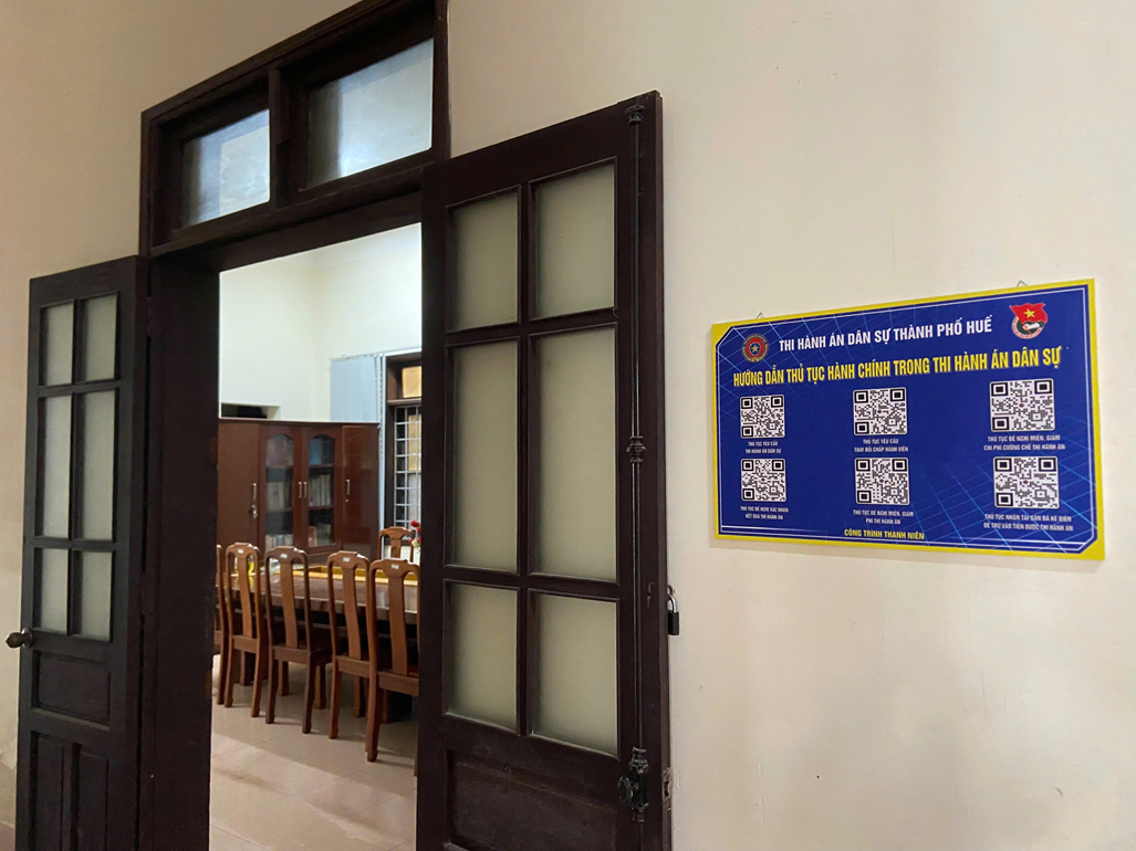 Trước đó, thực hiện Công văn số 62-CV/ĐU ngày 03/3/2026 của Đảng ủy THADS thành phố Huế và Kế hoạch số 02-KH/ĐTN ngày 04/3/2026 của Đoàn Ủy ban nhân dân thành phố Huế, Ban Chấp hành Chi đoàn thanh niên THADS thành phố Huế đã xây dựng Kế hoạch số 07-KH/ĐTN ngày 06/3/2026 về triển khai các hoạt động tháng thanh niên năm 2026. Kế hoạch tập trung vào việc phát huy vai trò xung kích, sáng tạo của thanh niên trong việc tham gia thực hiện các công trình, phần việc, góp phần hoàn thành nhiệm vụ chuyên môn và đẩy mạnh chuyển đổi số tại đơn vị. Điểm nhấn của Kế hoạch là Công trình thanh niên “Hướng dẫn thủ tục hành chính trong thi hành án dân sự” (sau đây viết tắt là Công trình thanh niên). Công trình thanh niên thực hiện số hóa 06 thủ tục hành chính trong lĩnh vực THADS bao gồm: Yêu cầu thi hành án; Xác nhận kết quả thi hành án; Miễn, giảm phí thi hành án; Nhận tài sản đã kê biên để trừ vào tiền thi hành án; Thay đổi Chấp hành viên và Miễn, giảm chi phí cưỡng chế. Thông qua mã QR code, người dân có thể dễ dàng cập nhật các quy định mới nhất từ Quyết định số 3776/QĐ-BTP ngày 31/12/2025 của Bộ trưởng Bộ Tư pháp về việc công bố các thủ tục hành chính có thành phần hồ sơ được thay thế bằng dữ liệu. Bên cạnh việc tra cứu trình tự, thủ tục và thời hạn giải quyết, Công trình thanh niên còn cung cấp đường link tải trực tiếp các mẫu đơn nghiệp vụ (mẫu D01, D02, D04, D05, D06, D07) theo Thông tư số 04/2023/TT-BTP ngày 14/8/2023 của Bộ Trưởng Bộ Tư pháp) để người dân tự điền thông tin trên thiết bị điện tử. Đây là hoạt động nằm trong chuỗi sự kiện hưởng ứng Tháng Thanh niên năm 2026 của tuổi trẻ THADS thành phố Huế.