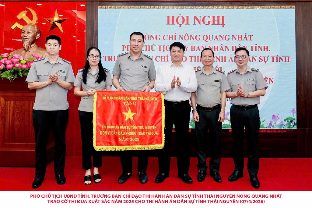 Nhân dịp này, đồng chí Phó Chủ tịch UBND tỉnh đã trao Cờ thi đua của UBND tỉnh năm 2025 cho tập thể Thi hành án dân sự tỉnh Thái Nguyên nhằm ghi nhận những thành tích xuất sắc, tiêu biểu trong phong trào thi đua.