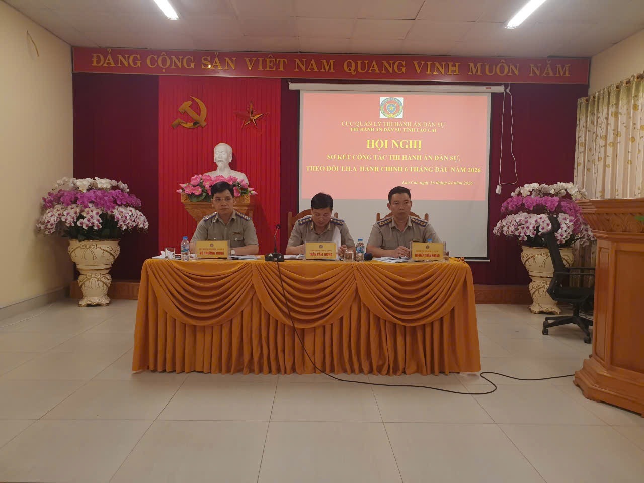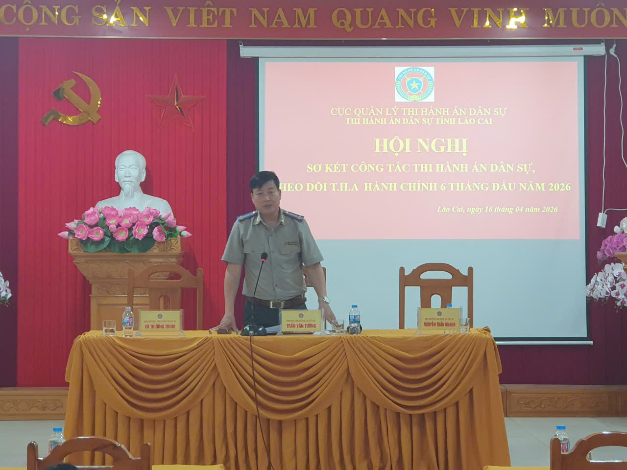 Phát biểu kết luận Hội nghị đồng chí Trần Văn Tường - Trưởng THADS tỉnh, đã nhấn mạnh: trong 6 tháng cuối năm 2026, dự báo số lượng việc và tiền thụ lý, phải thi hành ngày càng tăng cao, tranh chấp dân sự, hành chính ngày càng nhiều, yêu cầu nhiệm vụ của các cơ quan THADS nói chung và các cơ quan THADS tỉnh Lào Cai nói riêng hết sức nặng nề. Vì thế, để bảo đảm hoàn thành các chỉ tiêu, nhiệm vụ được giao năm 2026, các cơ quan THADS tỉnh Lào Cai tiếp tục bám sát sự chỉ đạo của Bộ Tư pháp, ngành, chương trình, kế hoạch của đơn vị năm 2026, tranh thủ tối đa sự quan tâm của cấp ủy, chính quyền địa phương, vận dụng thực hiện tốt các quy chế phối hợp, tập trung thực hiện đồng bộ 9 nhóm nhiệm vụ, giải pháp cụ thể trên từng yêu cầu, nhiệm vụ. Chủ động trong công tác tham mưu cho Ban chỉ đạo THADS trong giải quyết các vụ việc khó khăn, phức tạp.