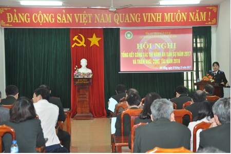 Hội nghị đánh giá kết quả công tác Thi hành án dân sự năm 2017 đã giải quyết xong 7.544 việc/9.431 việc có điều kiện thi hành, đạt tỷ lệ 80% (so với chỉ tiêu được Quốc hội giao, vượt 8%), trong đó số việc có điều kiện nhưng chưa thi hành xong là 1.887 việc, so với số việc có điều kiện thi hành năm 2016 chuyển sang năm 2017 (2.074 việc) giảm 187 việc (9%) và giải quyết xong hơn 582 tỷ đồng trong tổng số hơn 1.385 tỷ đồng có điều kiện thi hành, đạt tỷ lệ 42.1% (so với chỉ tiêu Quốc hội giao, vượt 12.1%), trong đó số tiền có điều kiện nhưng chưa thi hành xong là 802.471.437.000 đồng, so với số việc có điều kiện thi hành năm 2016 chuyển sang năm 2017 (1.242.098.601.000đồng) giảm 439.627.164.000đồng (35%). Các mặt công tác khác như: Công tác tiếp công dân giải quyết khiếu nại, tố cáo, tổ chức, cán bộ, xây dựng ngành và các mặt công tác khác đã tổ chức, chỉ đạo thực hiện nghiêm túc theo đúng quy định.