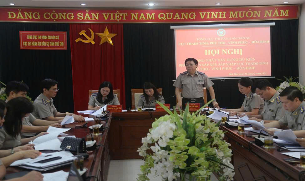Thực hiện sự phân công của Tổng cục THADS, Cục THADS tỉnh Phú Thọ nơi đặt trụ sở tỉnh Phú Thọ sau sáp nhập đã tổ chức chương trình làm việc giữa ba Cục: Cục THADS tỉnh Phú Thọ, Hòa Bình và Vĩnh Phúc nhằm trao đổi, thảo luận, thống nhất các nội dung phục vụ cho việc triển khai phương án sắp xếp cơ quan THADS cấp tỉnh theo yêu cầu của Tổng cục THADS.