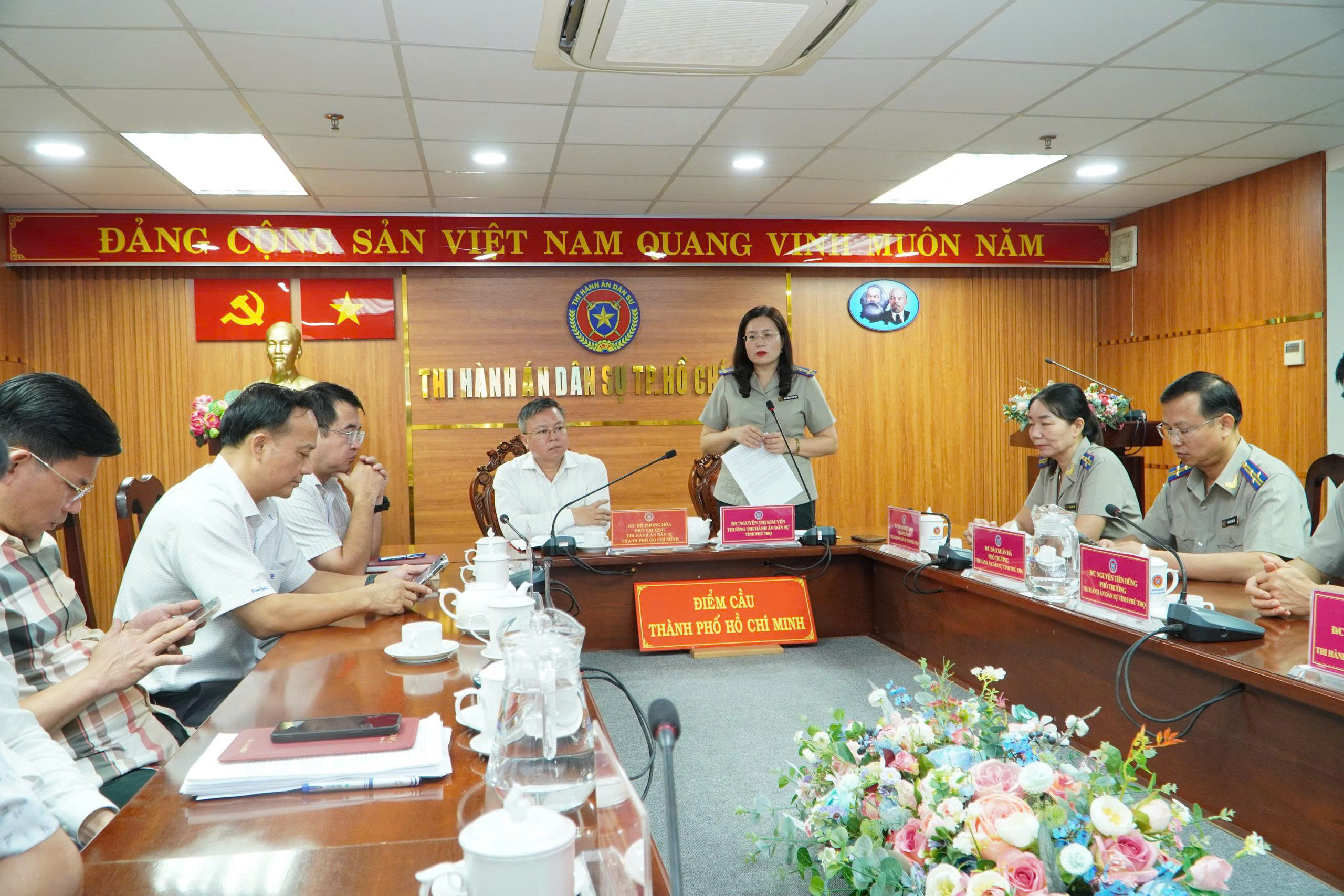 Tại buổi làm việc, đoàn công tác tỉnh Phú Thọ đã nghe báo cáo khái quát về tình hình, kết quả công tác THADS của Thành phố Hồ Chí Minh – một trong những đơn vị có quy mô lớn nhất cả nước, với khối lượng việc và tiền phải thi hành hàng năm rất cao, đòi hỏi yêu cầu quản lý chặt chẽ, khoa học và ứng dụng mạnh mẽ công nghệ thông tin trong mọi khâu nghiệp vụ.