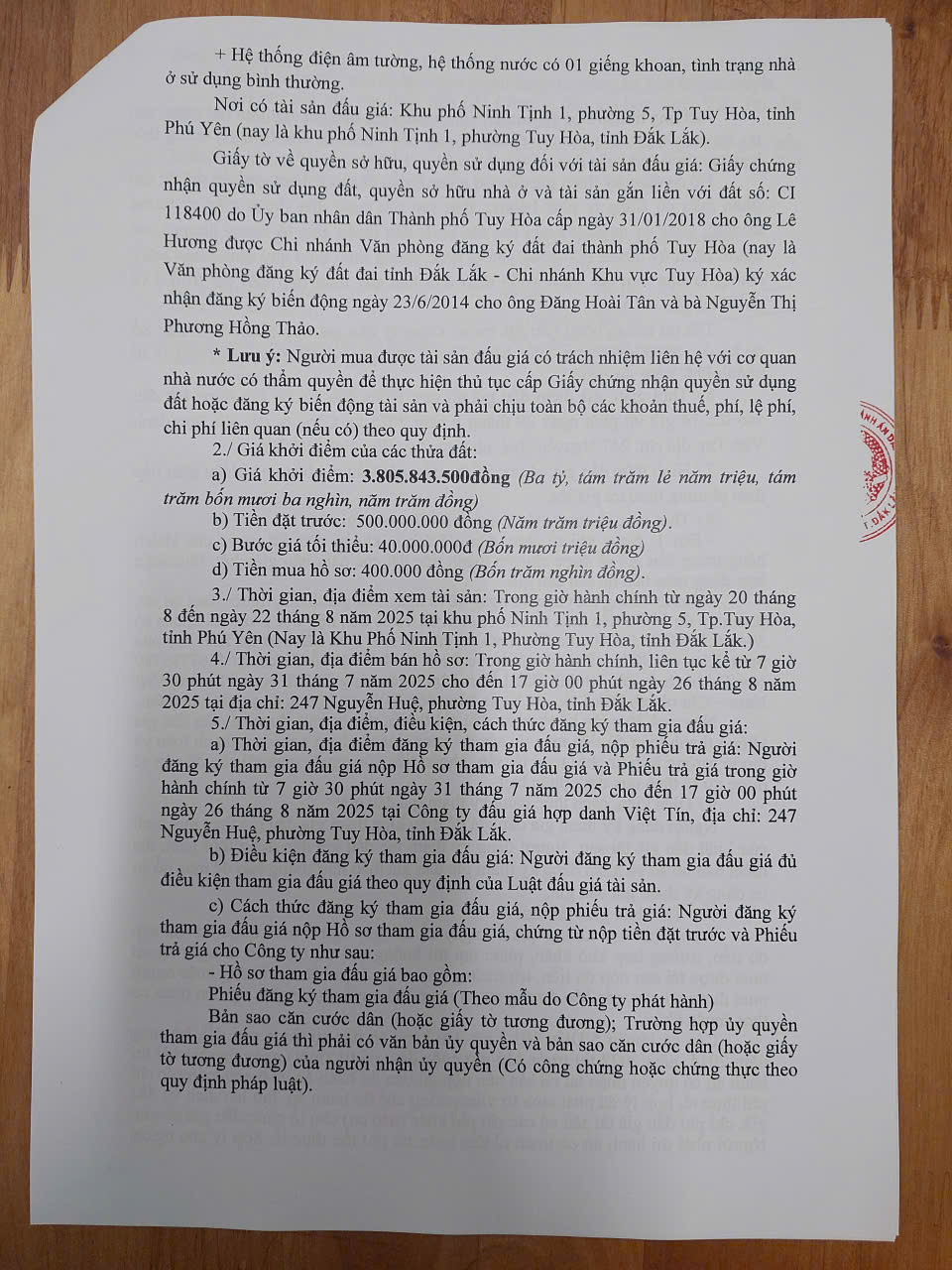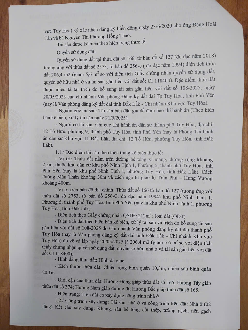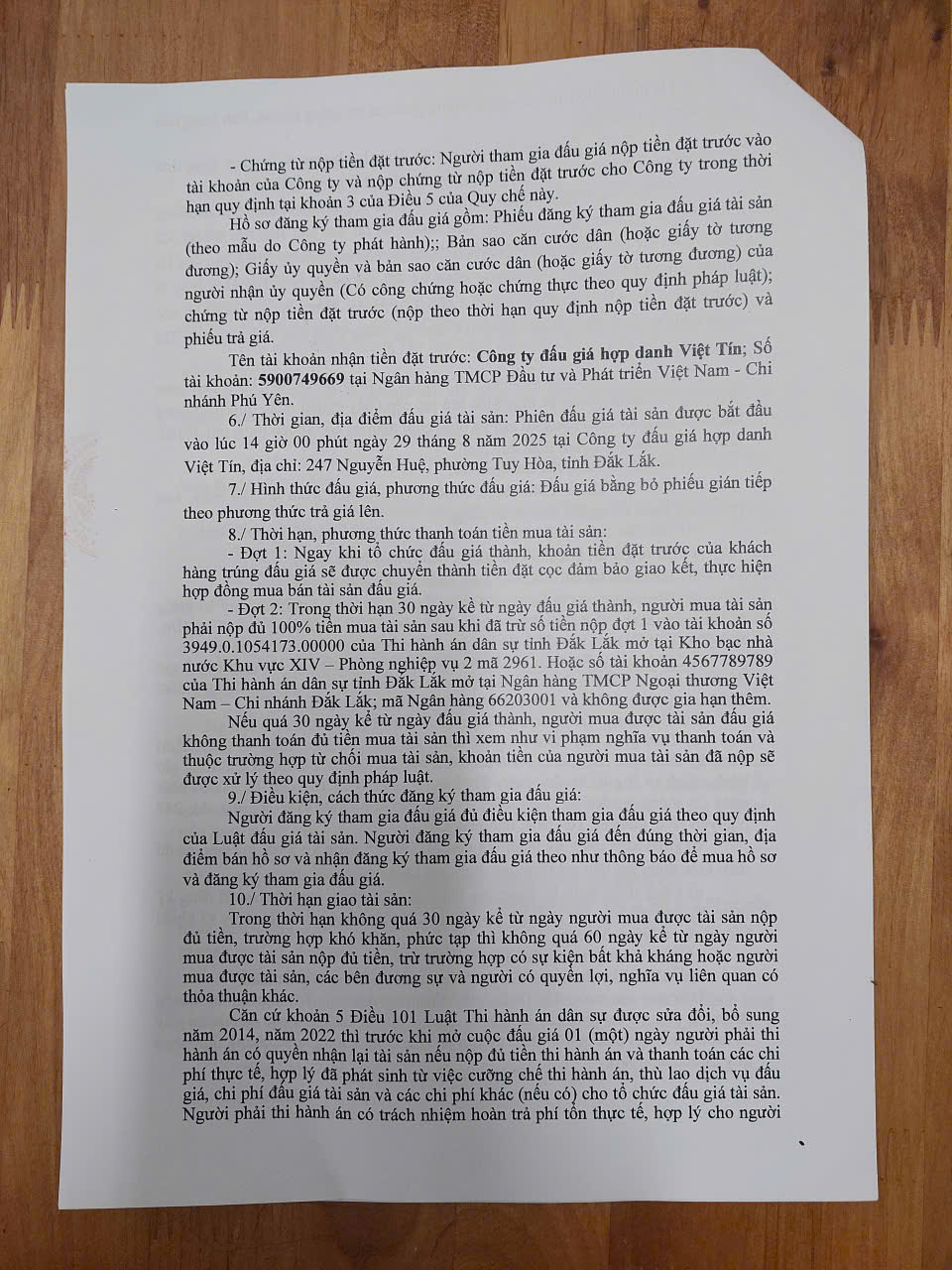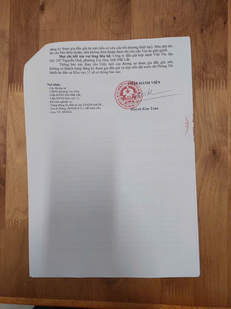 thông báo về việc bán đấu giá tài sản THA lần thứ 16 - Chi cục THADS tp.Tuy Hòa