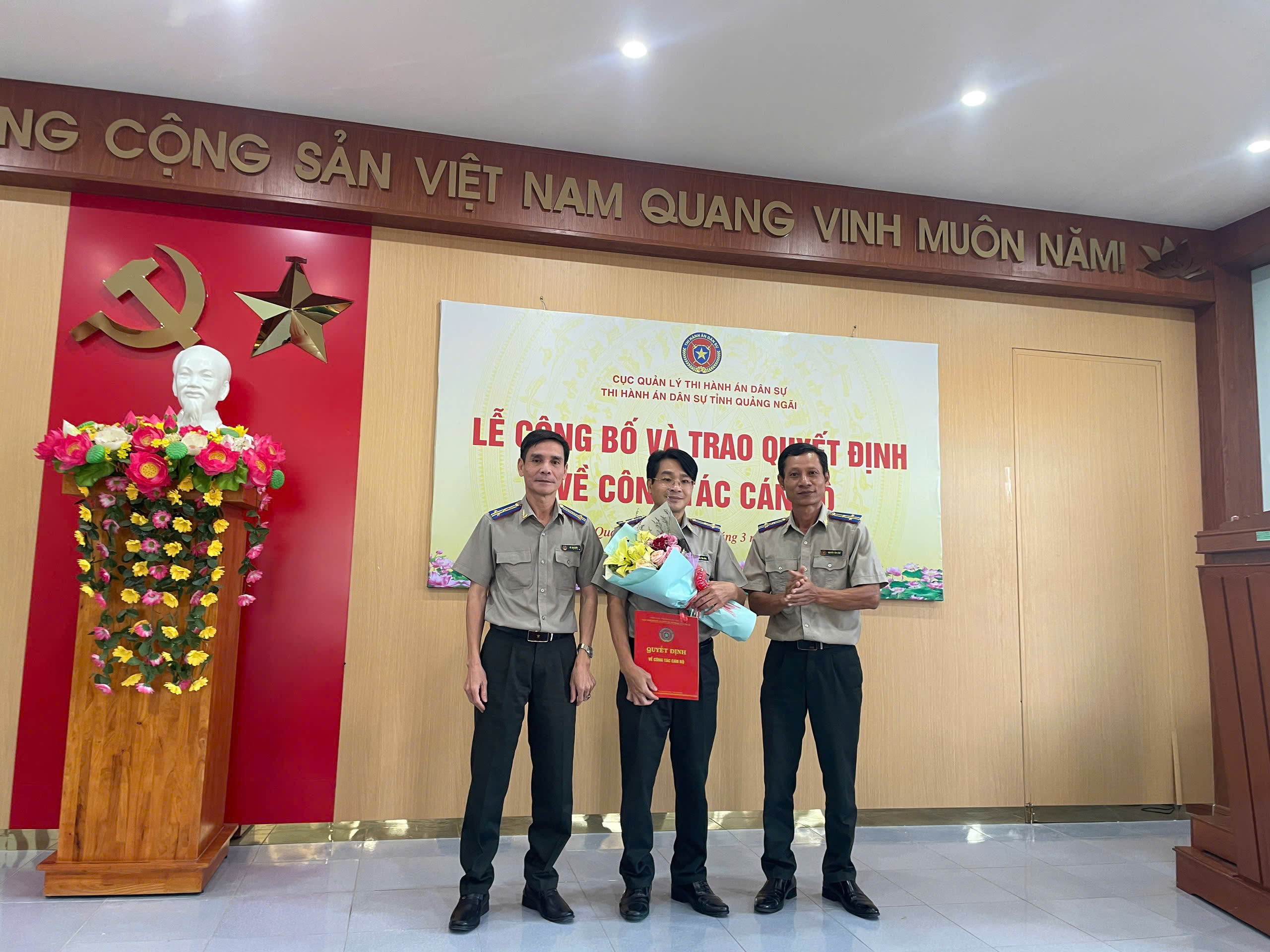 Chiều ngày 26/3/2026, Thi hành án dân sự (THADS) tỉnh Quảng Ngãi tổ chức Lễ công bố quyết định của Cục trưởng Cục Quản lý THADS về việc bổ nhiệm ông Cao Tiến Đồng giữ chức vụ Phó Trưởng THADS tỉnh Quảng Ngãi kể từ ngày 20/3/2026.