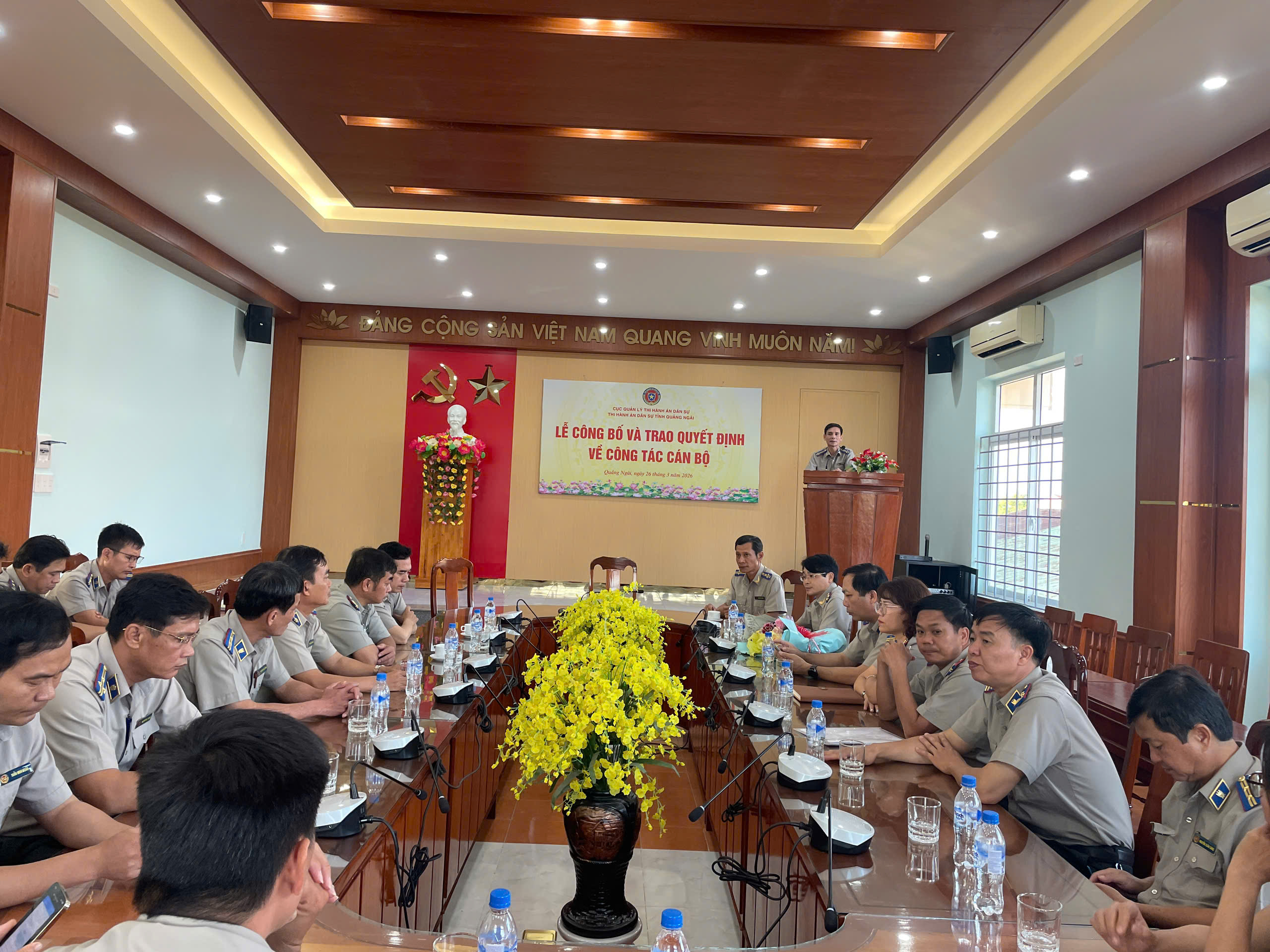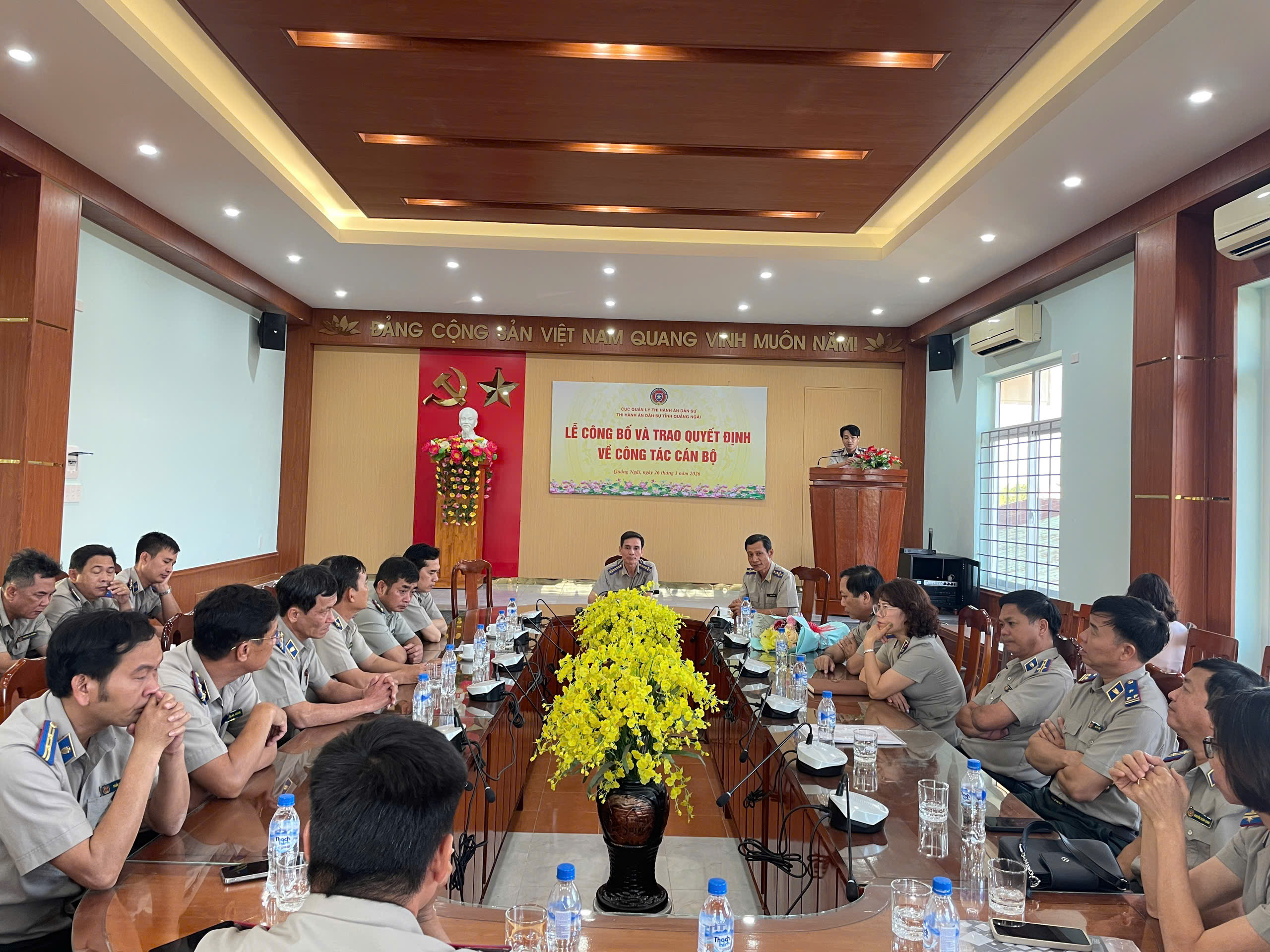 Tại buổi lễ, thừa ủy quyền của Cục Quản lý THADS, ông Võ Văn Xông – Trưởng THADS tỉnh Quảng Ngãi đã công bố và trao quyết bổ nhiệm ông Cao Tiến Đồng, Chấp hành viên trung cấp, Trưởng phòng Phòng THADS Khu vực 9, tỉnh Quảng Ngãi giữ chức vụ Phó Trưởng THADS tỉnh Quảng Ngãi kể từ ngày 20/3/2026.