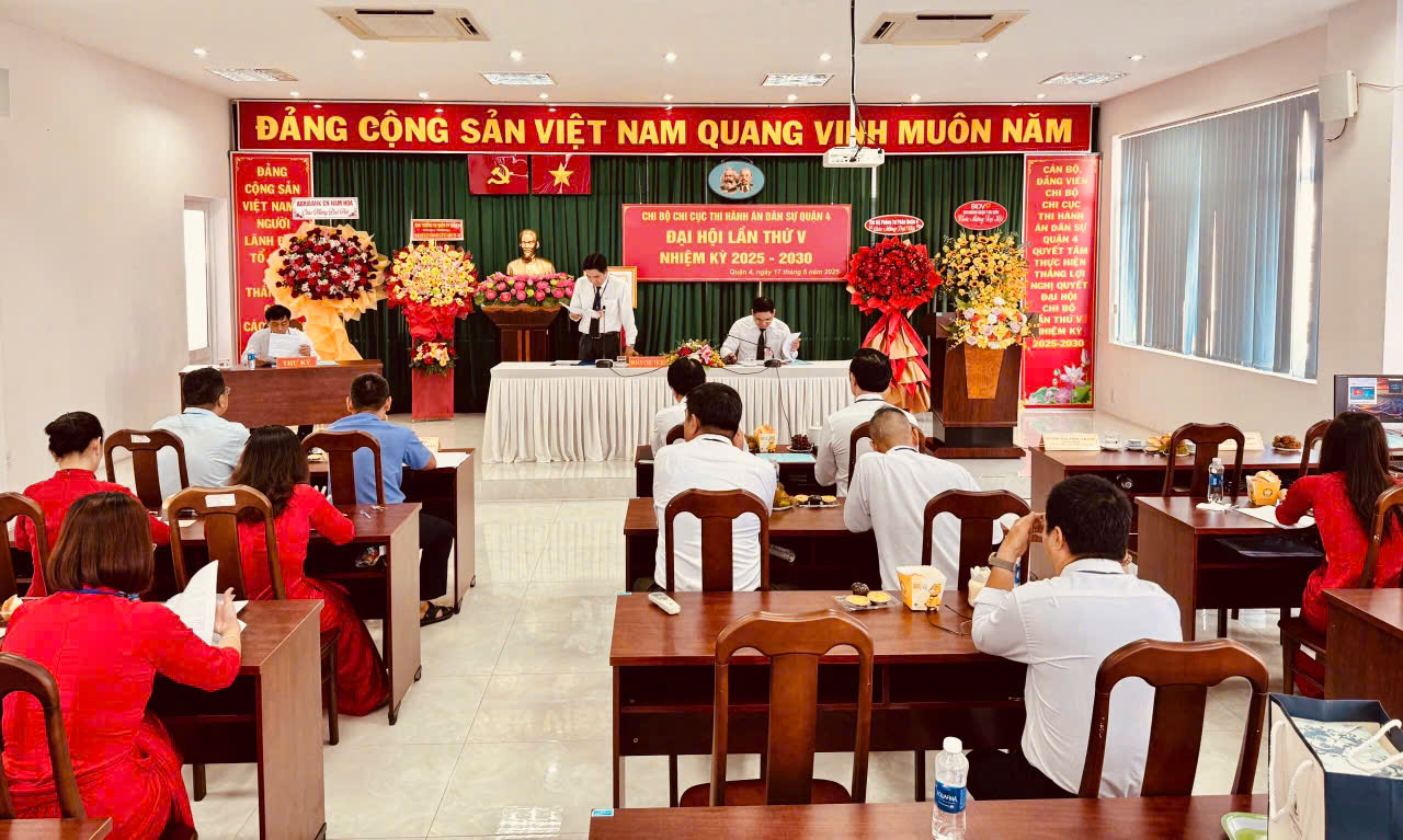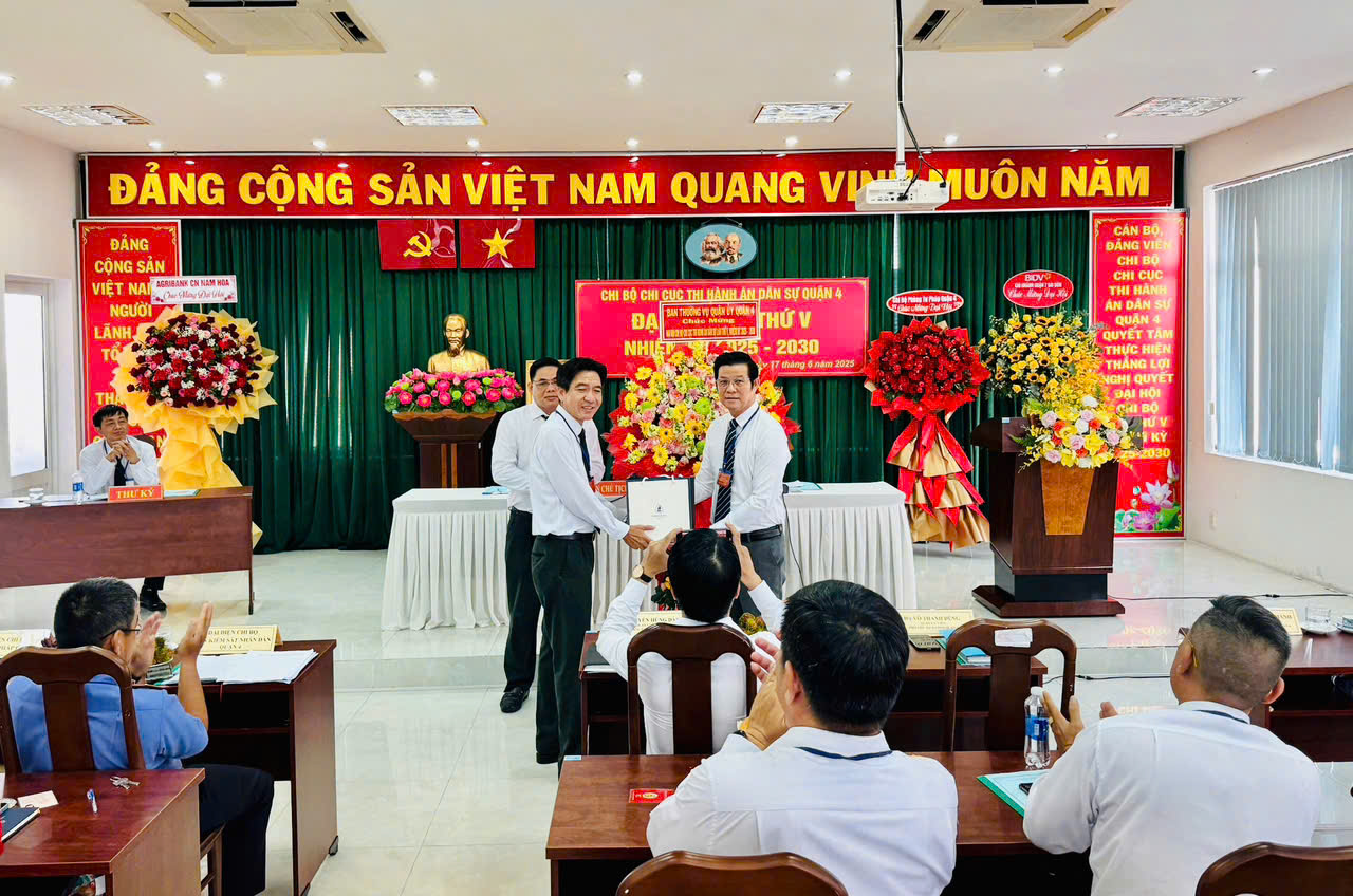 Phát biểu chỉ đạo đại hội, đồng chí Võ Thanh Dũng - Quận Ủy viên - Phó chủ tịch ủy ban nhân dân Quận 4 ghi nhận, biểu dương những kết quả Chi bộ Chi cục Thi hành án dân sự Quận 4 đã đạt được trong nhiệm kỳ vừa qua. Đồng chí đề nghị Chi bộ chủ động triển khai, cụ thể hóa Nghị quyết số 57-NQ/TW và Nghị quyết số 68 - NQ/TW của Bộ Chính trị về đột phá phát triển khoa học, công nghệ, đổi mới sáng tạo và chuyển đổi số quốc gia, về phát triển kinh tế tư nhân nhằm thực hiện khát vọng phát triển đất nước hùng cường, thịnh vượng thành các chương trình hành động thiết thực, phù hợp với đặc thù và định hướng phát triển của đơn vị.