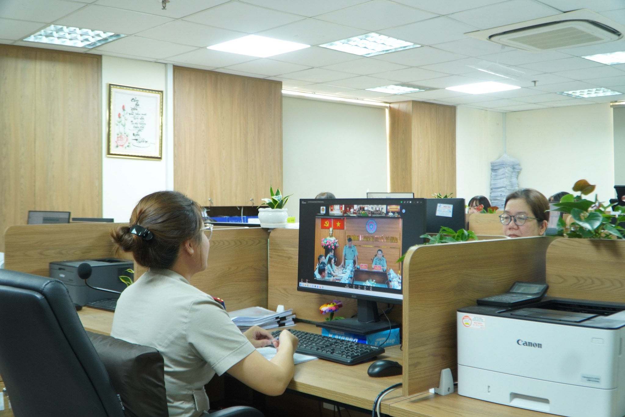 Cùng với đó, đại diện công chức Phòng Tài chính - Kế toán cho biết, việc ứng dụng công nghệ thông tin và vận hành Nền tảng số đã tạo điều kiện thuận lợi trong quá trình thực hiện nhiệm vụ, việc trao đổi nghiệp vụ, cập nhật thông tin giữa các bộ phận được thực hiện nhanh chóng, đồng bộ, rút ngắn thời gian xử lý công việc, góp phần cải cách thủ tục hành chính, nâng cao hiệu suất làm việc của công chức (bà Vương Thị Thu Trang – Kế toán viên Phòng Tài chính – Kế toán).
