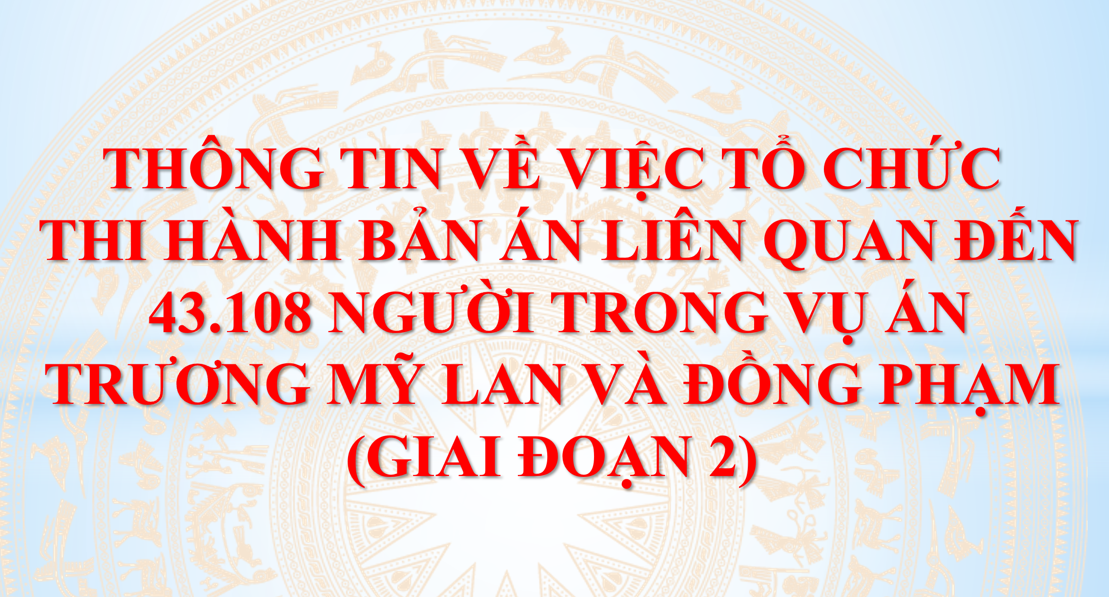 THÔNG TIN VỀ VIỆC TỔ CHỨC THI HÀNH BẢN ÁN LIÊN QUAN ĐẾN 43.108 NGƯỜI TRONG VỤ ÁN TRƯƠNG MỸ LAN VÀ ĐỒNG PHẠM (GIAI ĐOẠN 2) (17/06/2025)
