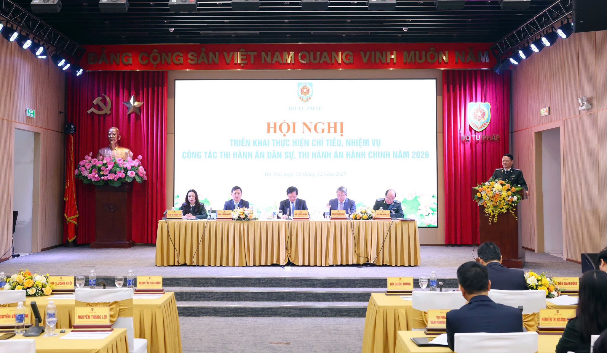 Ngày 12-12, Bộ Tư pháp tổ chức Hội nghị triển khai thực hiện chỉ tiêu, nhiệm vụ công tác thi hành án dân sự (THADS), thi hành án hành chính (THAHC) năm 2026. Phó Thủ tướng Chính phủ Hồ Quốc Dũng dự và phát biểu chỉ đạo Hội nghị.