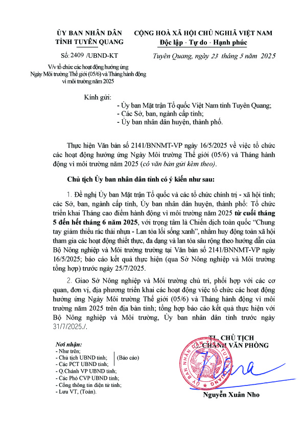 Tổ chức các hoạt động hưởng ứng Ngày Môi trường Thế giới (05/6) và Tháng hành động vì môi trường năm 2025.