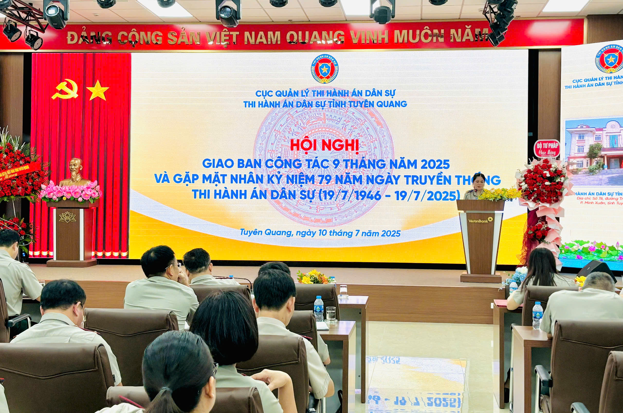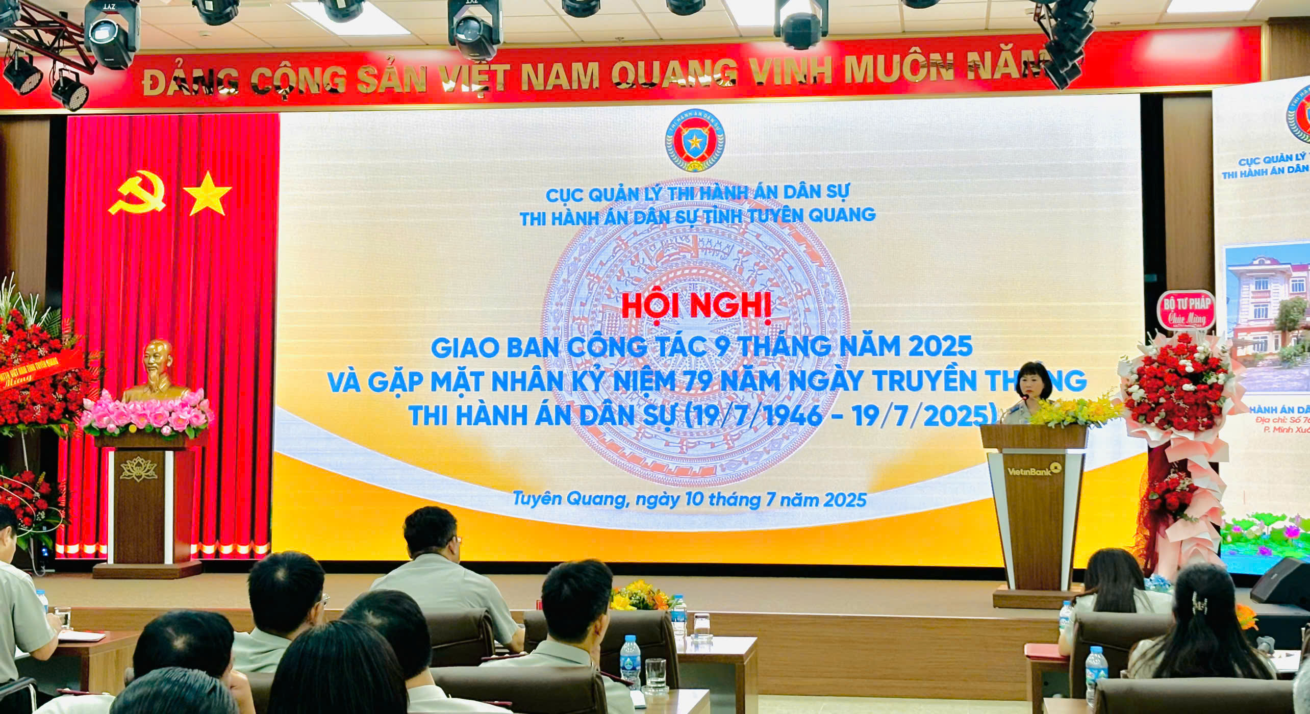 Theo báo cáo được trình bày tại Hội nghị, trong 9 tháng đầu năm 2025, các cơ quan THADS tỉnh Tuyên Quang và tỉnh Hà Giang (trước khi sáp nhập, hợp nhất) đã xây dựng, triển khai toàn diện các nhiệm vụ công tác theo kế hoạch được phê duyệt; mặc dù còn gặp nhiều khó khăn, nhất là trong bối cảnh số tiền thụ lý mới tăng cao so với năm trước, cụ thể toàn tỉnh (tính cả Tuyên Quang và Hà Giang) đã thi hành xong 4.862 việc = 154.546.440.000 đồng, đạt tỷ lệ 79,44% về việc (đạt 94,51% chỉ tiêu kế hoạch năm) và 23,94% về tiền (đạt 46,02% chỉ tiêu kế hoạch năm).