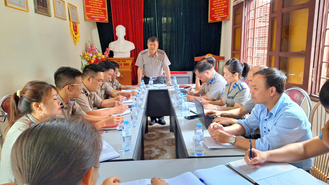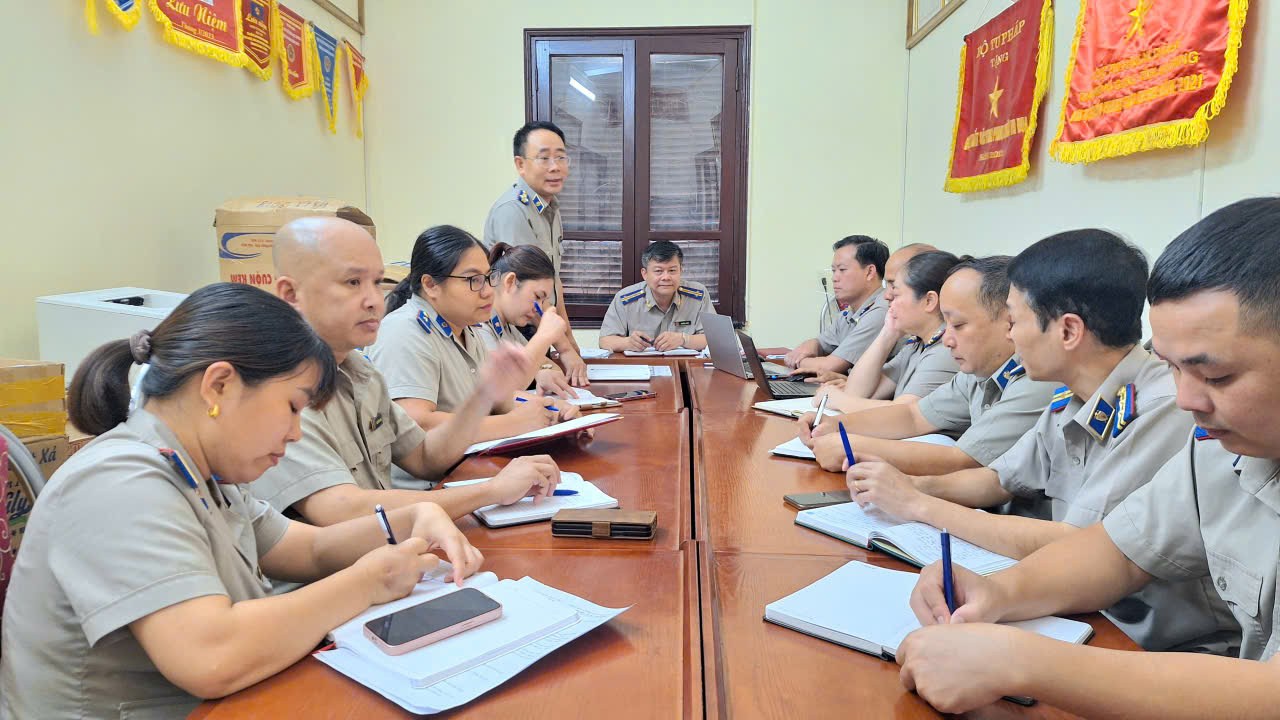 Sau khi nghe báo cáo và các ý kiến thảo luận, trao đổi, đồng chí Trưởng thi hành án đã ghi nhận, biểu dương những kết quả đạt được của các đơn vị trong thời gian qua. Đồng thời đề nghị các đồng chí lãnh đạo, công chức, người lao động các đơn vị tiếp tục quán triệt, triển khai thực hiện nghiêm túc, đầy đủ các nhiệm vụ, giải pháp theo Kế hoạch công tác năm 2025. Về thực hiện chỉ tiêu nhiệm vụ những tháng cuối năm 2025, cần tập trung thực hiện các nội dung sau (1) tiếp tục đổi mới tư duy, phương pháp chỉ đạo, điều hành để thích nghi với mô hình quản lý mới. Tiếp tục rà soát, hoàn thiện việc phân công nhiệm vụ cho từng công chức theo phương châm "rõ người, rõ việc, rõ trách nhiệm, rõ sản phẩm, rõ thời hạn hoàn thành". Phải có đánh giá định kỳ, làm cơ sở xếp loại kết quả thực hiện nhiệm vụ và nâng cao tinh thần trách nhiệm cá nhân. Tăng cường kiểm tra, giám sát việc thực hiện nhiệm vụ theo kế hoạch công tác đảm bảo tiến độ, chất lượng và hiệu quả, kịp thời chỉ đạo khắc phục, chấn chỉnh tồn tại, hạn chế và tháo gỡ khó khăn, vướng mắc trong quá trình thực hiện nhiệm vụ của từng công chức. (2) lãnh đạo đơn vị cần xác định đúng những nhiệm vụ trọng tâm, nhất là trong công tác tổ chức thi hành án; khẩn trương xây dựng kế hoạch, kịch bản xử lý đối với các vụ việc thi hành án phức tạp, án tồn đọng, án liên quan đến tổ chức cưỡng chế, kê biên, thẩm định giá, bán đấu giá tài sản; đặc biệt là vụ việc phức tạp để tồn đọng nhiều năm đơn vị đang tổ chức thi hành. (3) phát huy vai trò của Trưởng phòng trong việc giữ gìn đoàn kết nội bộ, ổn định tư tưởng cán bộ, duy trì kỷ luật, kỷ cương công vụ. Toàn thể công chức của đơn vị phải nêu cao hơn nữa tinh thần trách nhiệm; tích cực, tự giác học tập, nâng cao trình độ chuyên môn, nghiệp vụ, tăng cường công tác tham mưu, đề xuất; phát huy sự chủ động, sáng tạo trong thực hiện nhiệm vụ được giao. Đồng thời tích cực trao đổi, phối hợp chặt chẽ với các phòng chuyên môn để giải quyết các vấn đề khó khăn, vướng mắc trong thực hiện nhiệm vụ chuyên môn về THADS, công tác quản lý tài chính, tài sản, bố trí trụ sở, trang thiết bị, phương tiện làm việc…(4) duy trì nền nếp sinh hoạt đơn vị, tổ chức giao ban hàng tuần để đánh giá kết quả thực hiện nhiệm vụ, tháo gỡ kịp thời các khó khăn, vướng mắc; thực hiện việc sinh hoạt chi bộ vào ngày mùng 3 hàng tháng theo đúng tinh thần Chỉ thị số 50 của Ban Bí thư. Nội dung các cuộc họp cần được ghi chép, lưu trữ đầy đủ trong sổ họp cơ quan, sổ họp chi bộ, lãnh đạo và cấp ủy. (5) phải chủ động xây dựng quy chế phối hợp với chính quyền cấp xã và các cơ quan nội chính, đặc biệt là Công an trong quá trình tổ chức thi hành các vụ việc phức tạp, có cưỡng chế. Thực hiện nghiêm các quy trình phối hợp đã được Tổng cục ban hành tại Quyết định số 630/QĐ-TCTHADS ngày 26/6/2025. (6) đẩy mạnh việc ứng dụng CNTT, chuyển đổi số trong hoạt động THADS, thực hiện nghiêm túc việc triển khai sử dụng hiệu quả các phần mềm trong THADS, nhất là phần mềm điều hành văn bản (phiên bản mới), phần mềm hỗ trợ ra quyết định thi hành án, phần mềm biên lai điện tử…