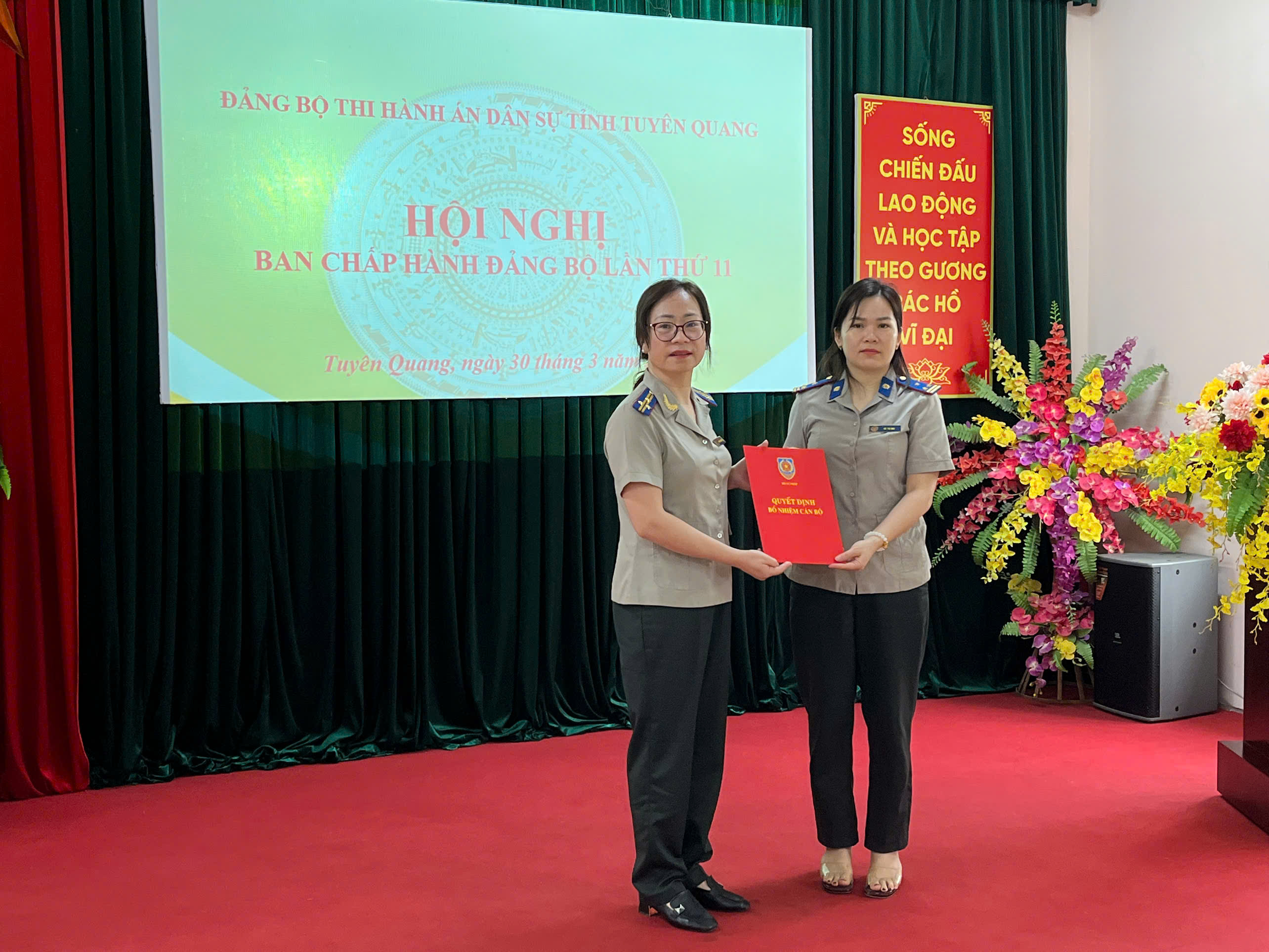 Tại Hội nghị Đ/c Nguyễn Tuyên – Bí thư Đảng uỷ đã trao quyết định của Ban Thường vụ Đảng uỷ UBND tỉnh chuẩn y kết quả bầu bổ sung Uỷ viên Ban Thường vụ Đảng uỷ THADS tỉnh nhiệm kỳ 2025 – 2030 cho đ/c Nguyễn Mạnh Hùng - Uỷ viên Ban Chấp hành Đảng bộ, Phó chủ nhiệm Uỷ ban Kiểm tra Đảng uỷ, Phó Trưởng THADS tỉnh; Đ/c Phan Thị Mai Thảo – Phó Bí thư Đảng uỷ trao quyết định của Ban Thường vụ Đảng uỷ UBND tỉnh chuẩn y kết quả bầu bổ sung Uỷ viên Uỷ ban kiểm tra Đảng uỷ THADS tỉnh nhiệm kỳ 2025 – 2030 cho đ/c Hà Thị Mai – Thẩm tra viên chính THADS tỉnh.
